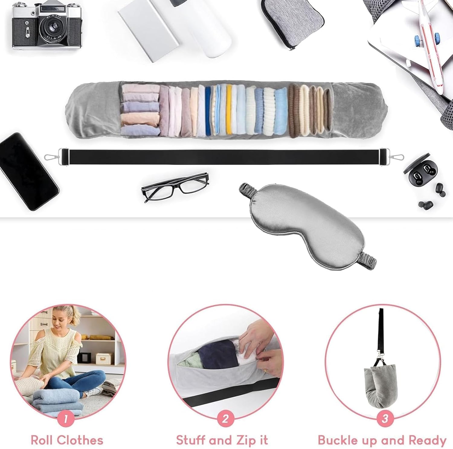 Profit: Eye masks Light-weight and breathable,Blocks out brilliant solar gentle. Our stuffable neck pillow for journey ensures a cushty sleep throughout your touring.With its self-filling characteristic, it can save you baggage area by stuffing your garments into this pillows.