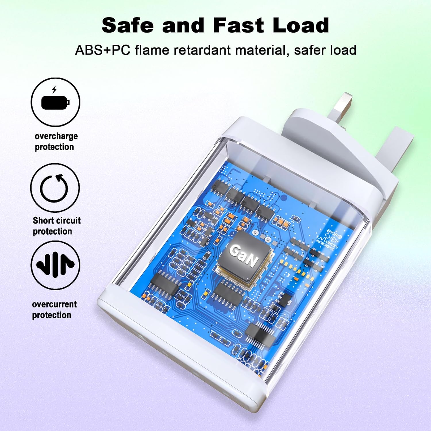 4-in-1 Multiport charger: 3 USB C ports (100 watt + 100 watt + 23 watt, as much as 100W single) and 1 USB A port(as much as 18 watt single), you may cost a number of units concurrently, together with smartphones, tablets, and laptops, iWatch and extra, all on the similar time quick charging.Whenever you join 4 units, energy will probably be distributed effectively between 4 ports to make sure optimum charging present.