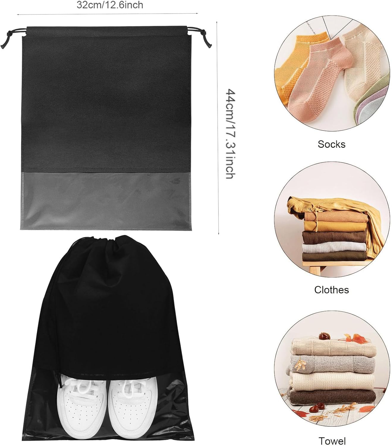 【Sturdy Materials】Moveable footwear pouch is made of top of the range non-woven cloth with thick drawstring which works nicely in anti-dust, mould proof and anti-abrasion, light-weight, and smooth, washable and dry quick.