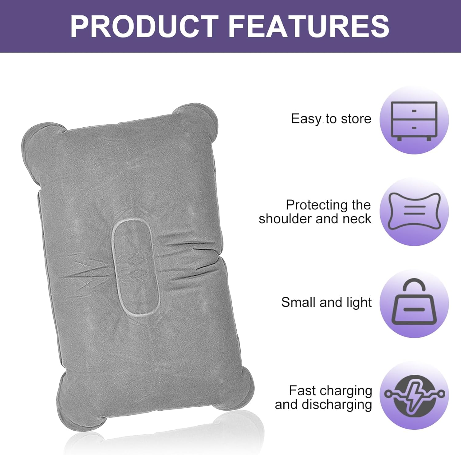 Materials: The inflatable pillow is product of flocked material and PVC liner, it’s light-weight, sturdy, waterproof and simple to wash