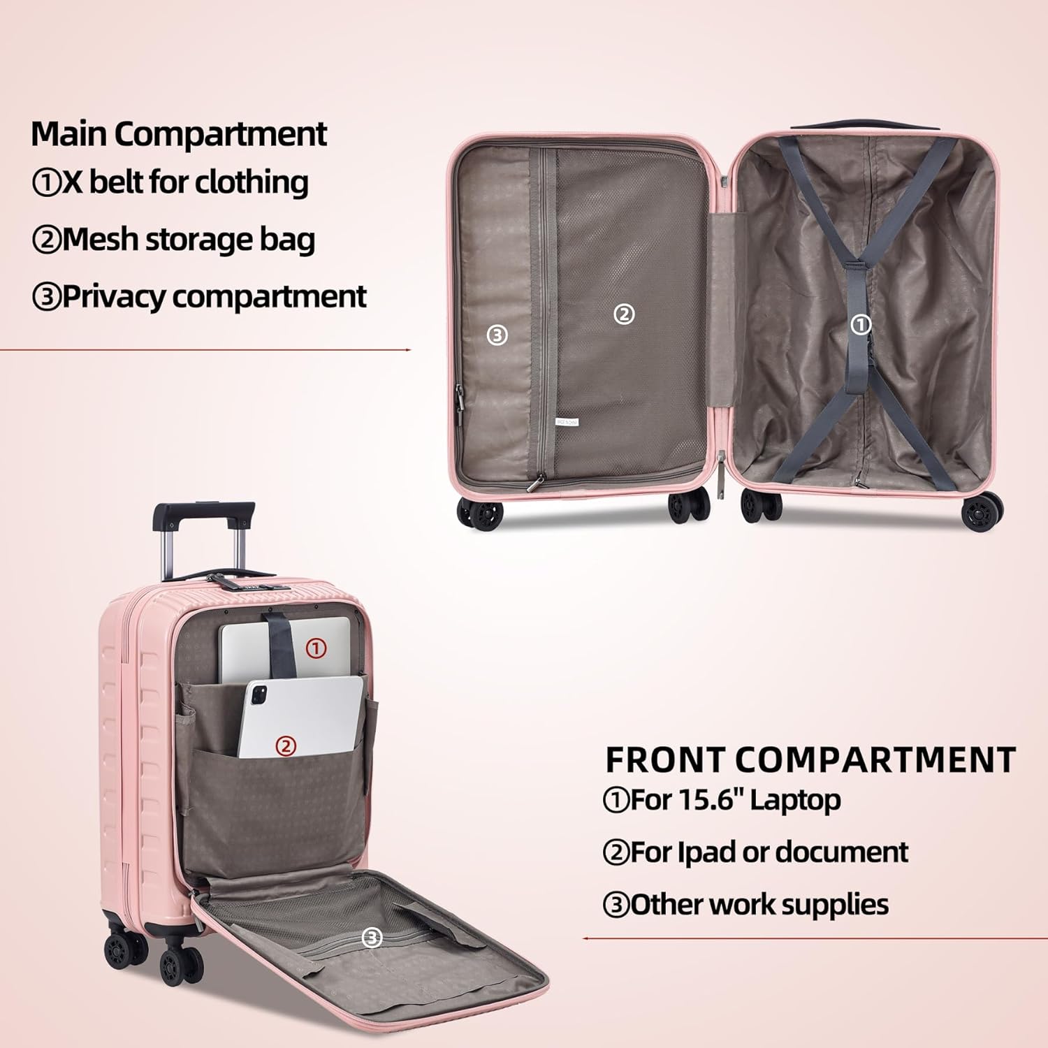 Entrance Laptop computer Zippers Design: One of many foremost advantages of getting a cabin baggage with a laptop computer compartment is you could maintain your laptop computer separate from the remainder of your belongings. This kaleenie entrance laptop computer pocket baggage makes it simpler to maintain your laptop computer protected and reduces the chance of harm throughout transit.