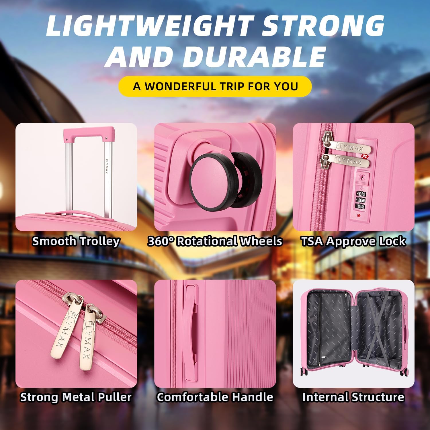 🧳 Suitcase Massive Telescopic Deal with Design – Trolley Suitcase The Flymax Suitcase options an ergonomic aluminum telescopic deal with, offering easy maneuverability even in compact areas.1 Yr Guarantee Included