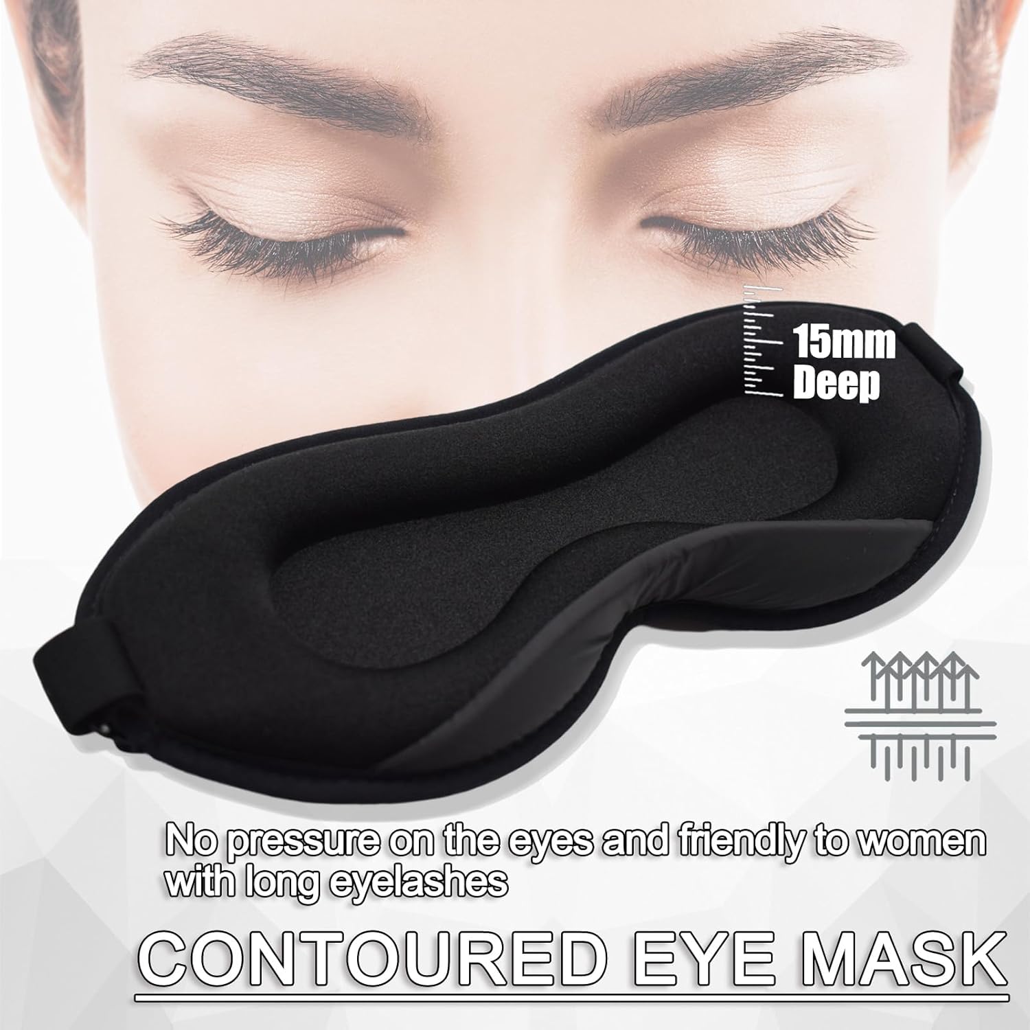 Lash-Defending 3D Contour Design: Deep 15mm eye cavity eliminates stress on eyelashes, good for lash extensions & delicate eyes. No make-up smudging or eye pressure throughout sleep.