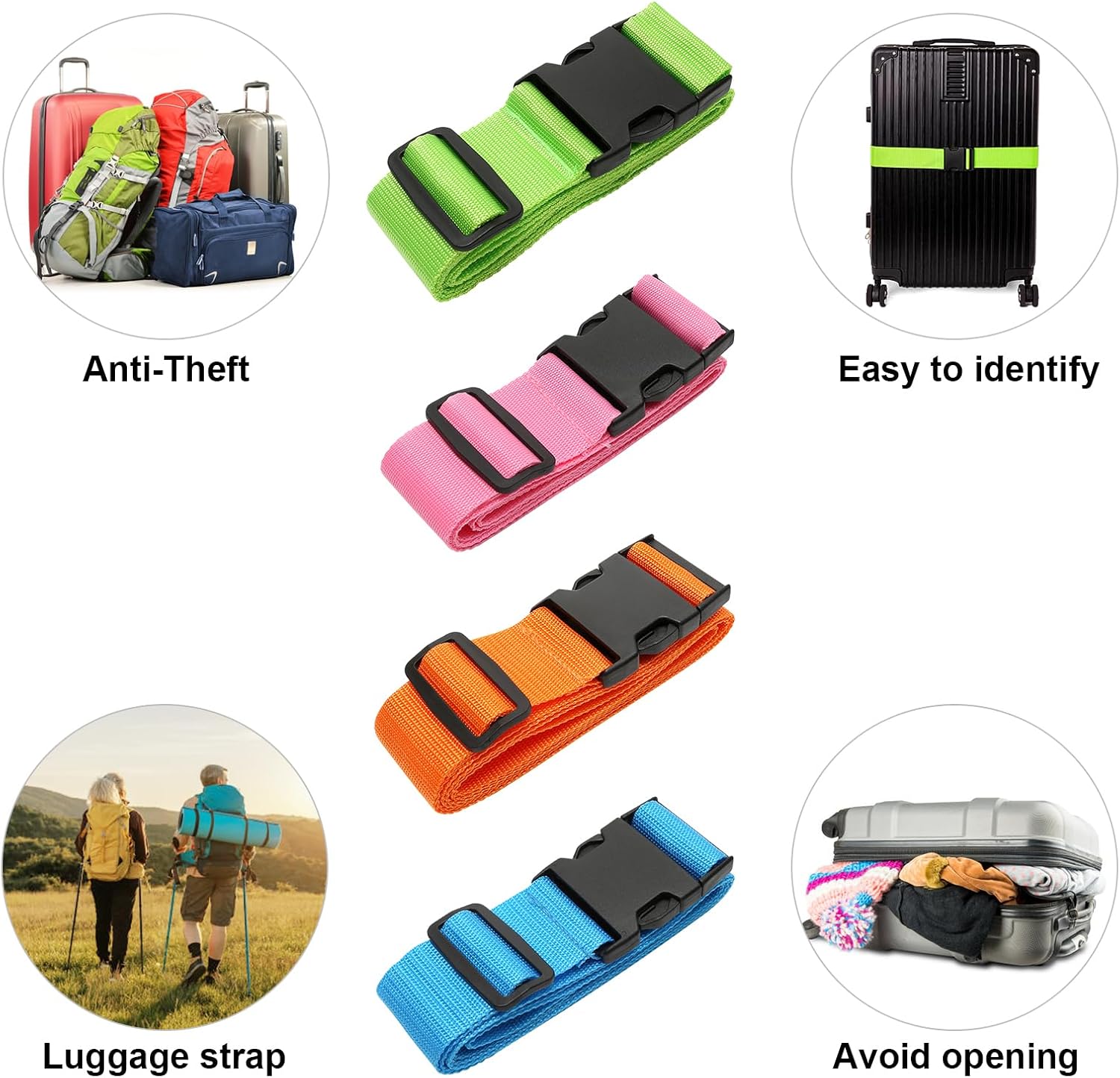 EASY IDENTIFICATION: Out there in 4 totally different colours, orange, sky blue, pink, inexperienced, these baggage straps make your suitcase stand out, serving to you rapidly determine your belongings at busy airports or baggage claims
