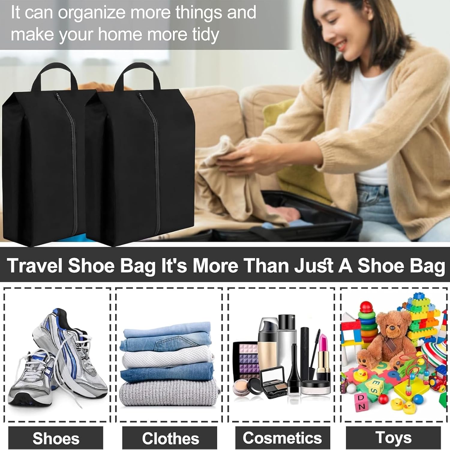 Product Embrace: You’ll obtain complete 4pcs black sneakers bag in 2 sizes, our every shoe baggage are foldable, light-weight and transportable, may be folded up when not in use to avoid wasting area in baggage or journey baggage.