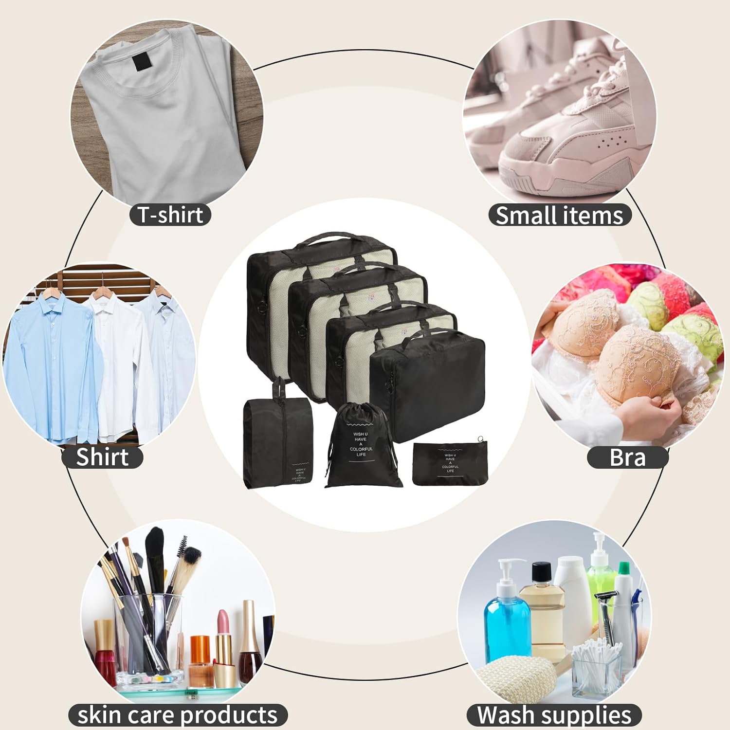 This Packing Cubes Set together with 3 items of packing cubes with see by way of mesh high for garments, 1 non-public cubes for bras and underwear, 1 footwear bag, 1 toiletry bag. With completely different dimension, the journey important bag set can retailer and classify garments.