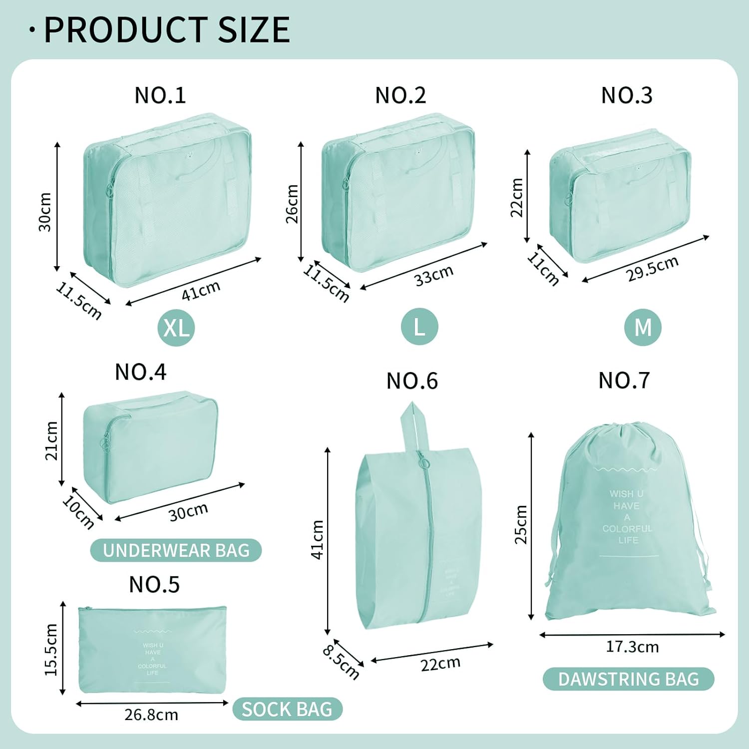 7 PCS Suitcase Organizer Set is ideal journey equipment to maintain your baggage neat and tidy appropriate for for family, journey, trip, enterprise journey and outside tenting, lodging.