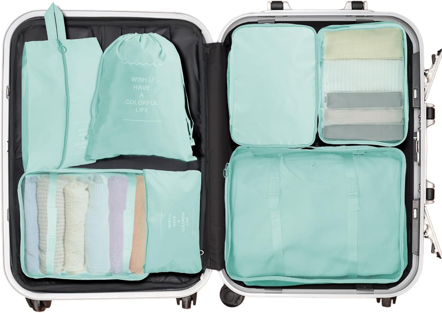 Separating Your Totally different Garments with Packing Cubes of A number of Sizes and Vivid Colour Choices Out there.