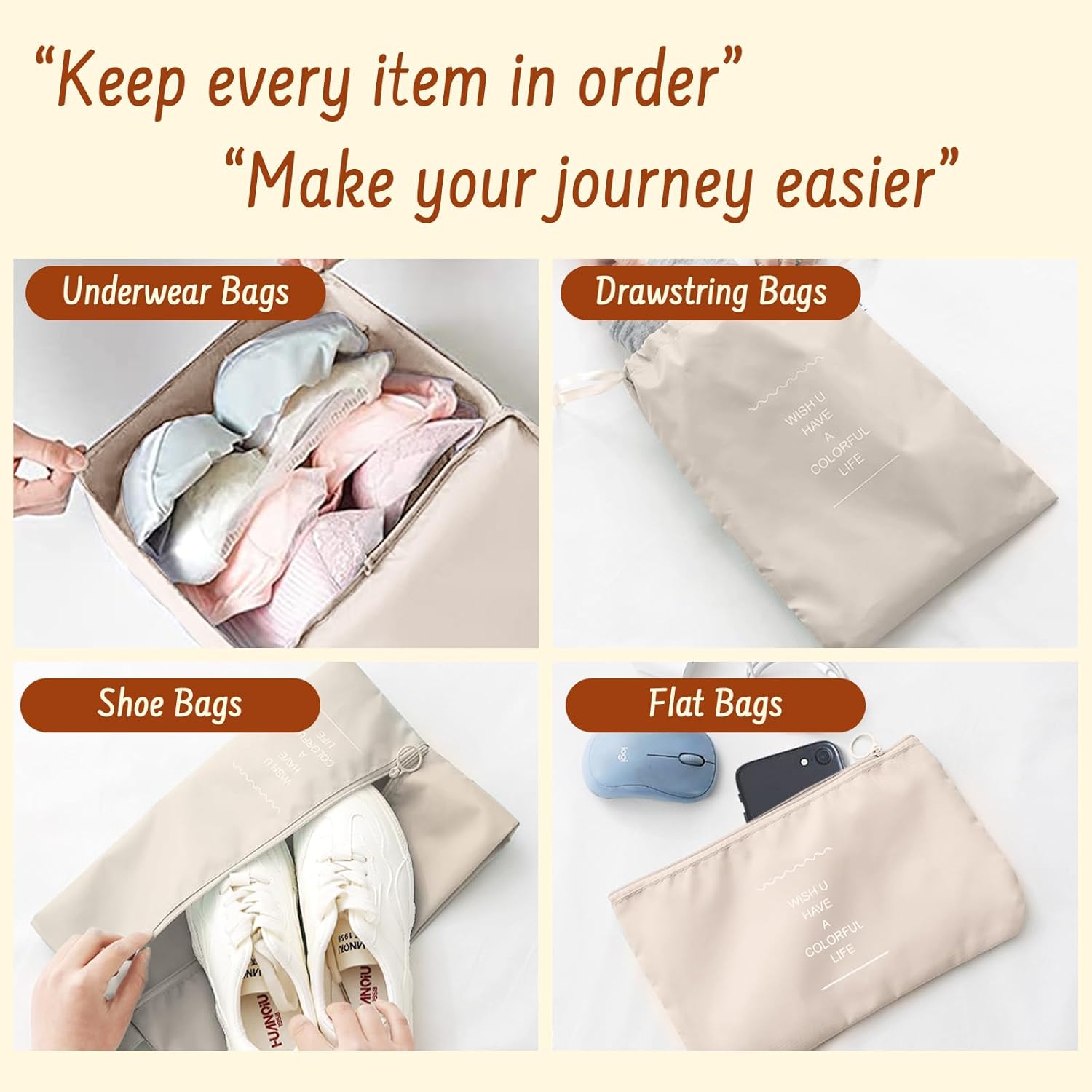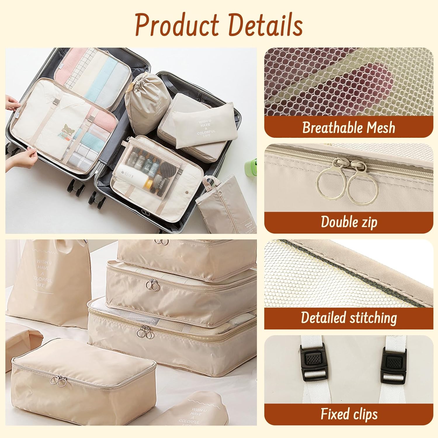 8 Packs Packing Cubes for Suitcases,MOFELON Journey Baggage Organiser Baggage,Waterproof Packing Cubes for Backpack Suitcase,Journey Necessities Bag Compression Storage Baggage,Journey Equipment(Beige)