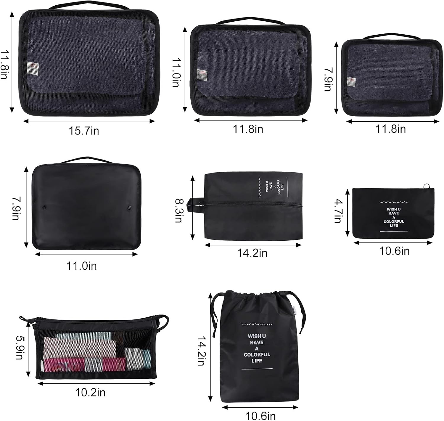 8 items suitcase organizer set to make your journey extra fulfilling.