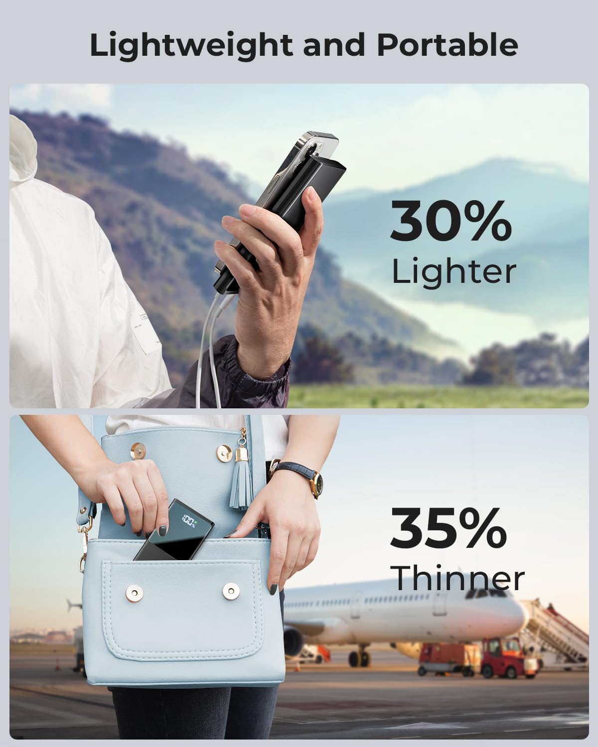 Security Charging Safety: Transportable energy financial institution built-in sensible chip mixed with sensible management IC system, has handed numerous security certifications, successfully protects the machine from overcharging, overvoltage, overcurrent and quick circuit when charging.