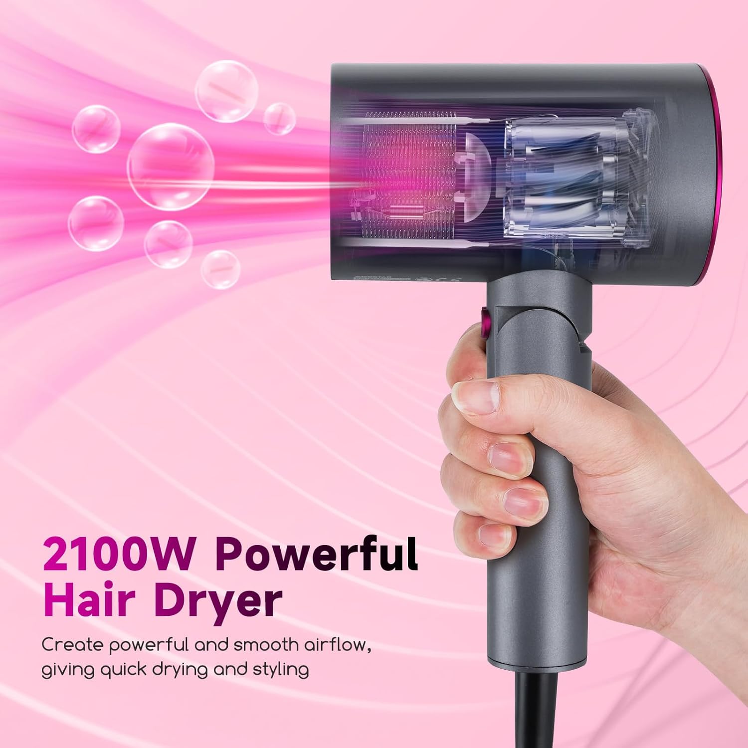 RAPID DRYING WITH 2100W MOTOR – Outfitted with a robust 2100W motor, this hair dryer rapidly and effectively dries hair, decreasing drying time and saving you worthwhile time in your busy day