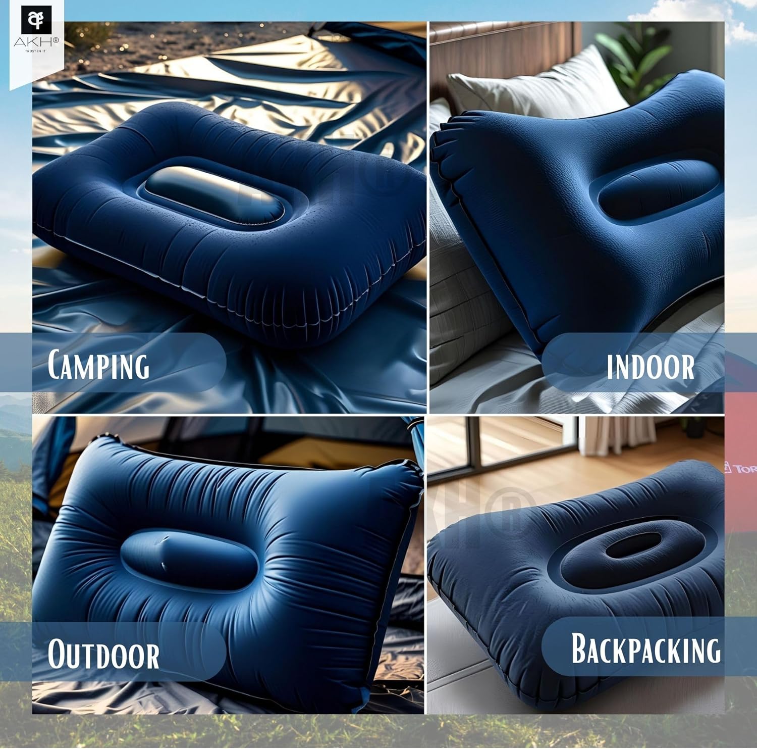 AKH® Inflatable Pillow 42 × 26 cm | Compact Portable Travel & Camping Air Cushion Neck Pillow | Lightweight Inflatable Headrest for Car, Flight & Outdoors