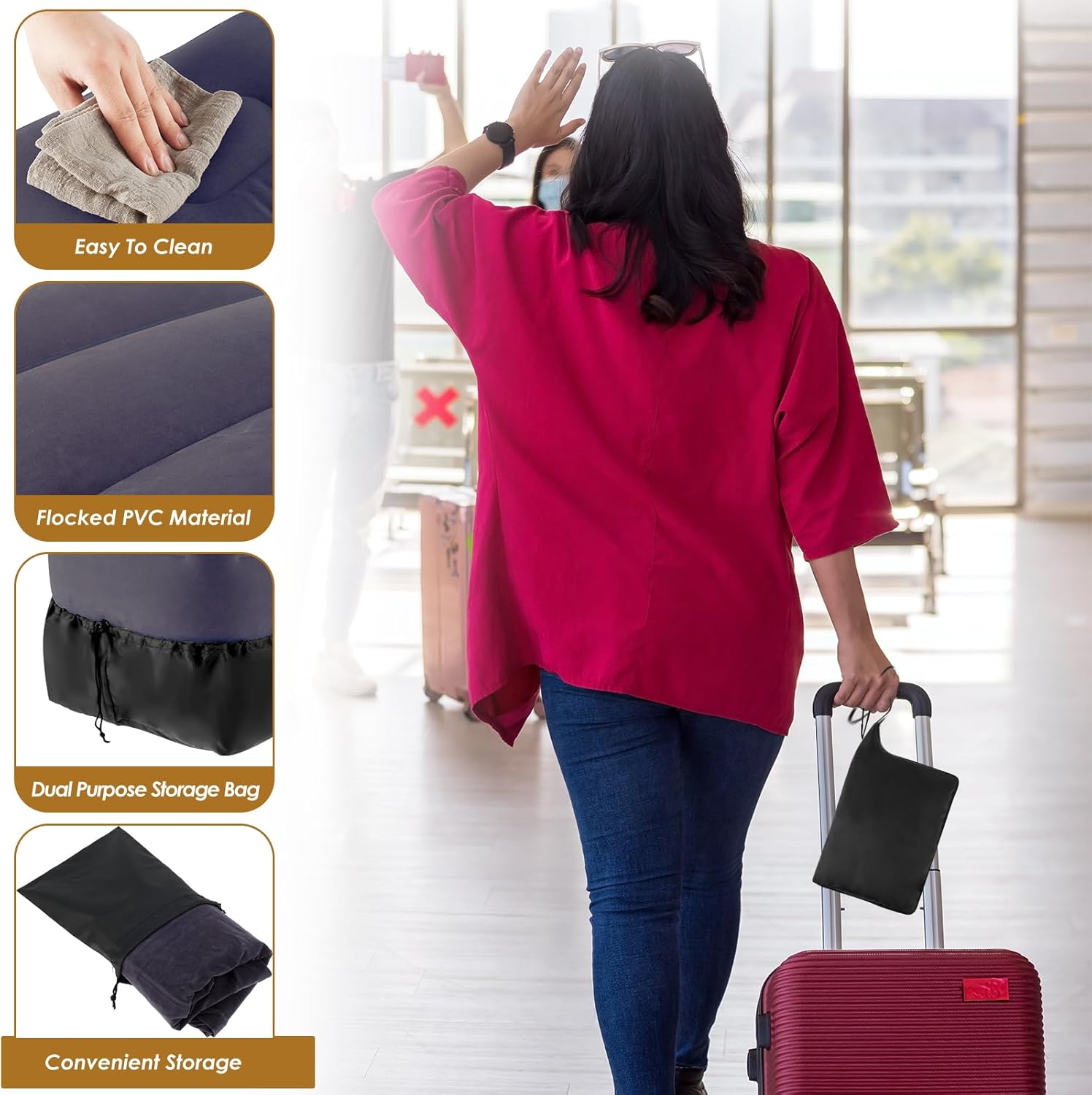 【Snug and Transportable】 This inflatable airplane foot relaxation is made from washable gentle PVC flocking, gentle, eco-friendly, wholesome, and sturdy that’s comfy to make use of. And the inflatable airplane foot relaxation is straightforward to fold right into a compact measurement of twenty-two×18×6cm and straightforward to place it right into a drawstring storage bag that’s moveable and handy.
