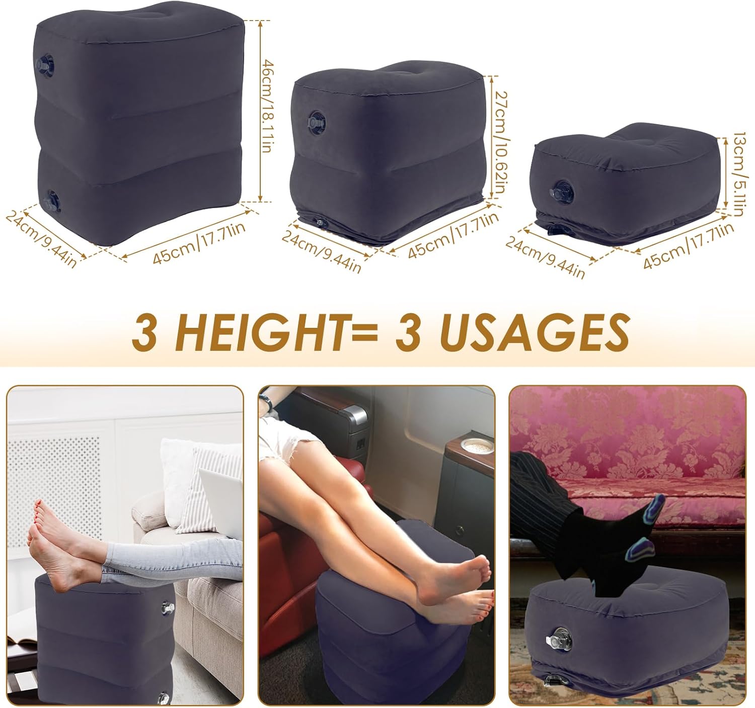 Stress-free: This inflatable airplane foot relaxation gives foot or leg help whereas long-time studying, gaming, watching TV at dwelling, workplace, travelling and extra. 3 layer peak adjustable that’s comfy to make use of.