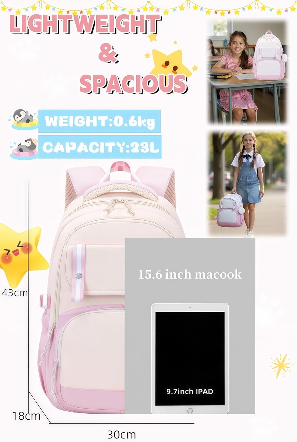 Multi-Colour & Giant-Dimension: This light-weight backpack measures 30cm x18cm x43cm(LxWxH),and is available in a wide range of colors so that you can select from:black, pink, purple, blue, brown;wealthy in colours, you possibly can select in response to your preferences.