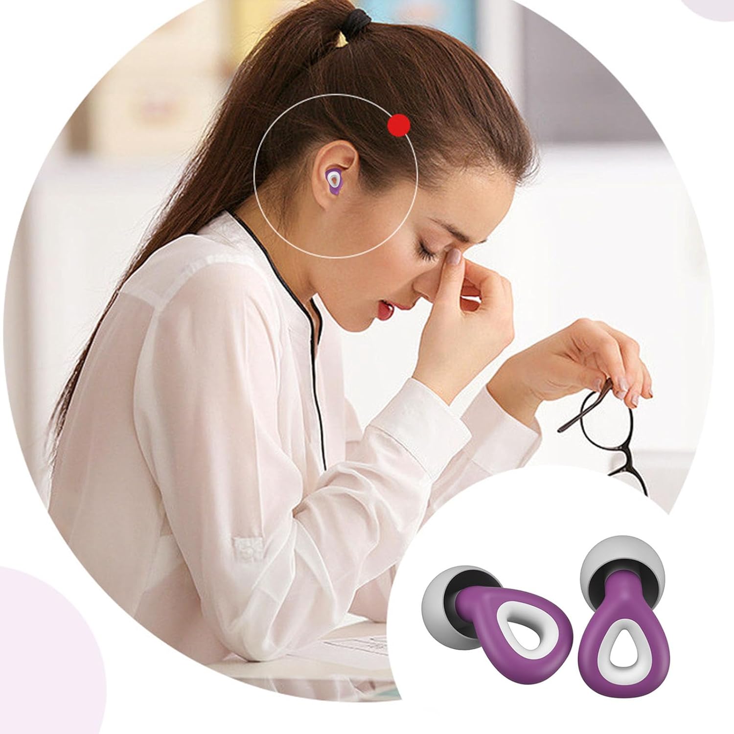 AWAVM Ear Plugs Noise Cancelling for Sleep with 3 Sizes Ear Tips S, M, L, Silicone Earplugs for Work, Reusable Hearing Protection Ear Plug Suitable for Snoring, Concert, Travel, Flights (Purple)