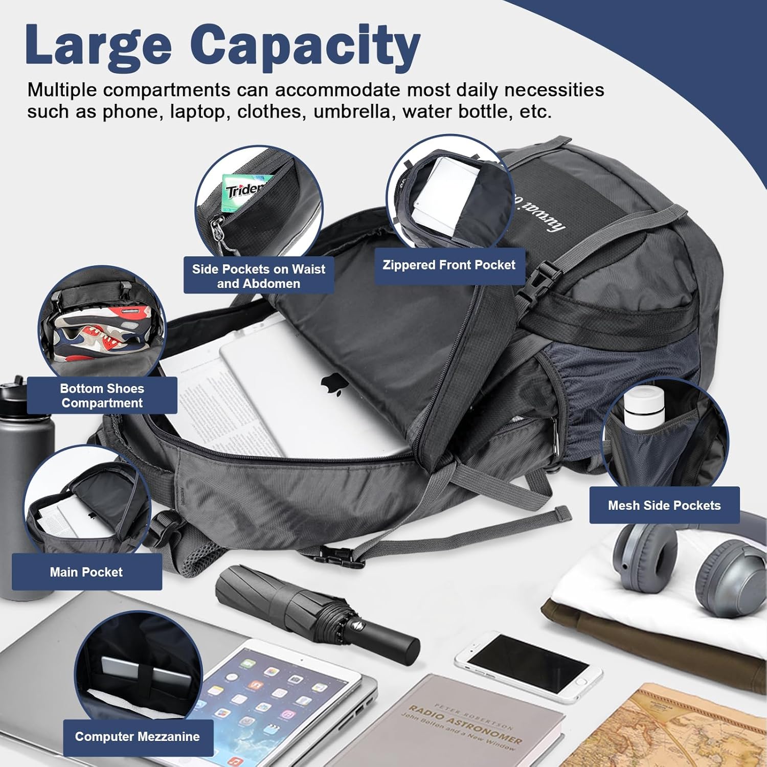 Right here is our 60L backpack for males ladies, product of sturdy supplies, tear-resistant and waterproof. With a number of compartments, you may put in most belongings you want. Weighing 2.1 kilos and that includes a foldable design, appropriate for outside actions and journey.