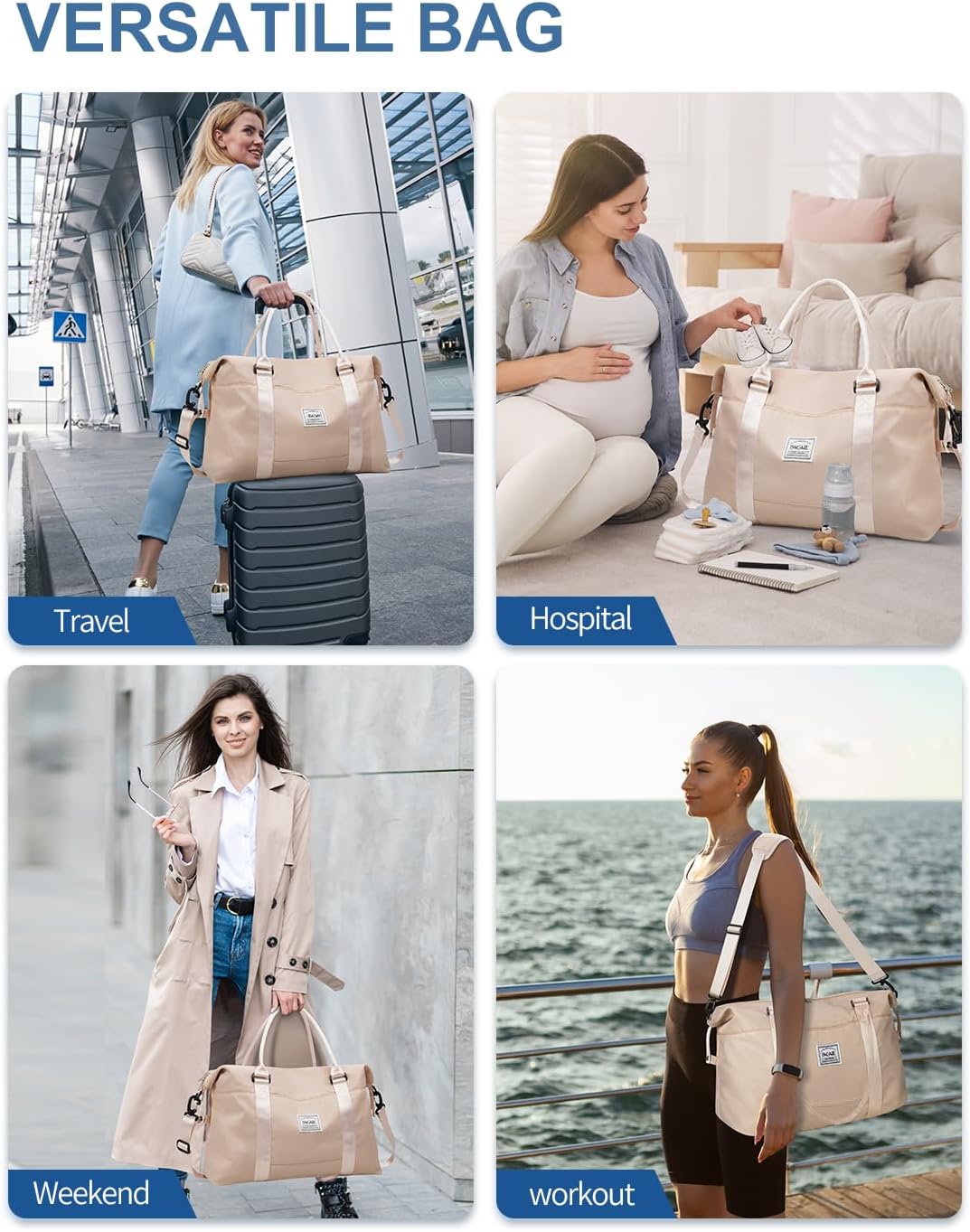 【Versatile In a single day bag】This weekender bag has many a number of inner and exterior organizational pockets, which guarantee you may have a spot for every thing. With its sturdy development, light-weight design, and classy look, this duffle bag can be utilized as journey bag, gymnasium bag, exercise bag, hospital bag, weekend bag, in a single day bag and whilst a mother bag.