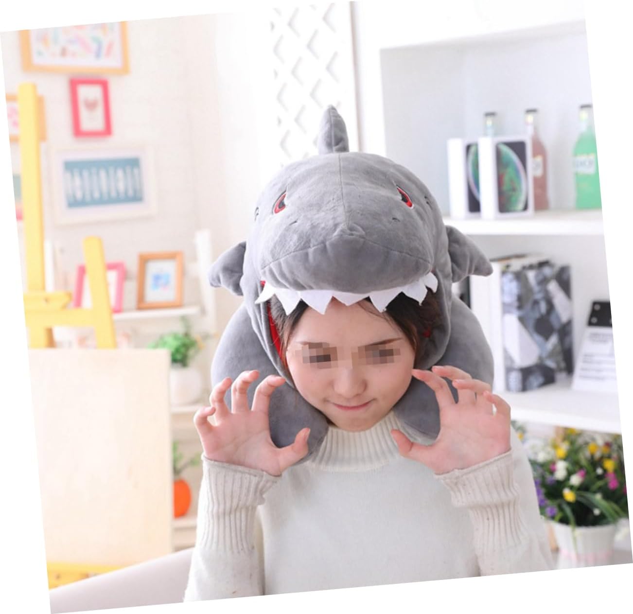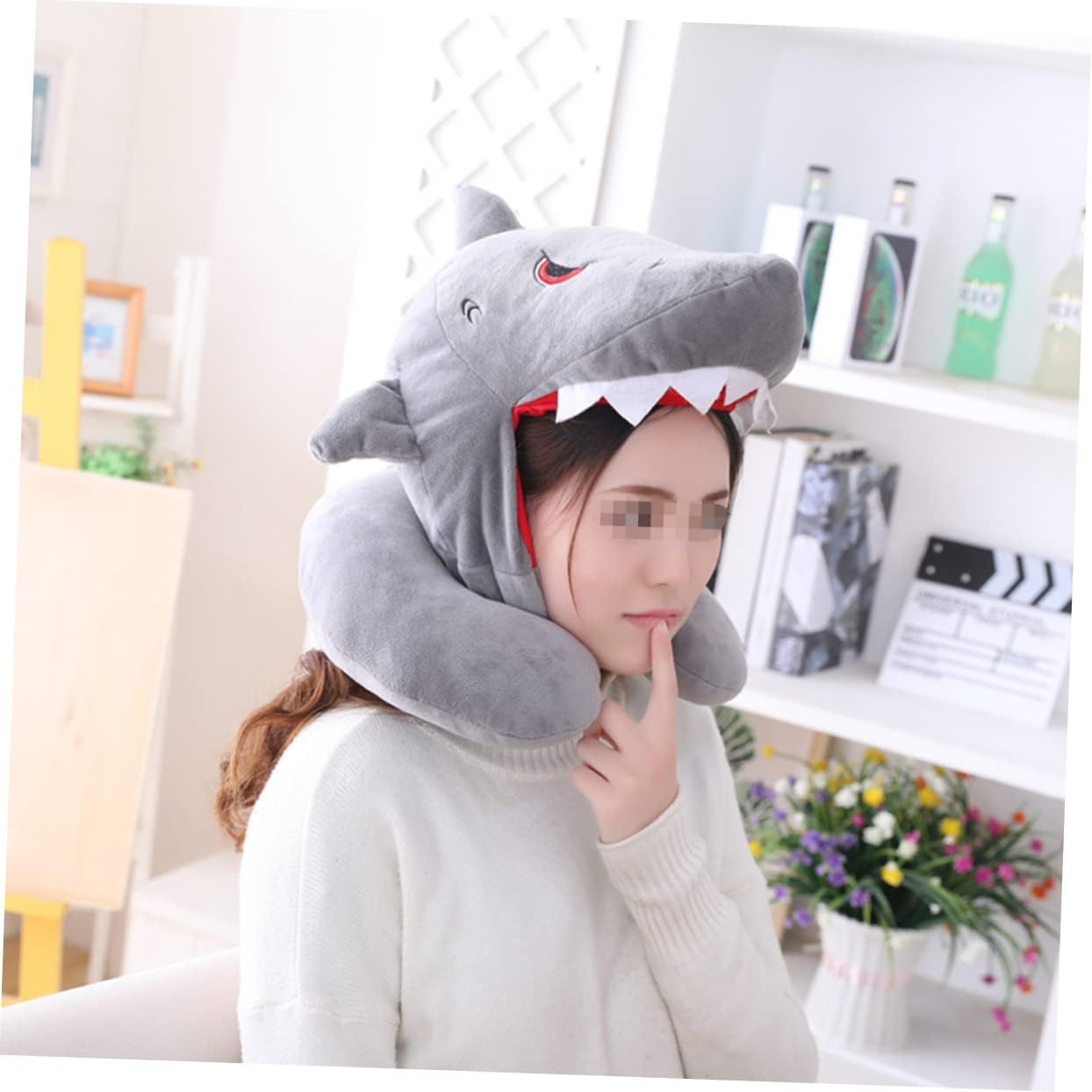 journey pillow shark:straightforward to put on on and off, to not fall off,shark head