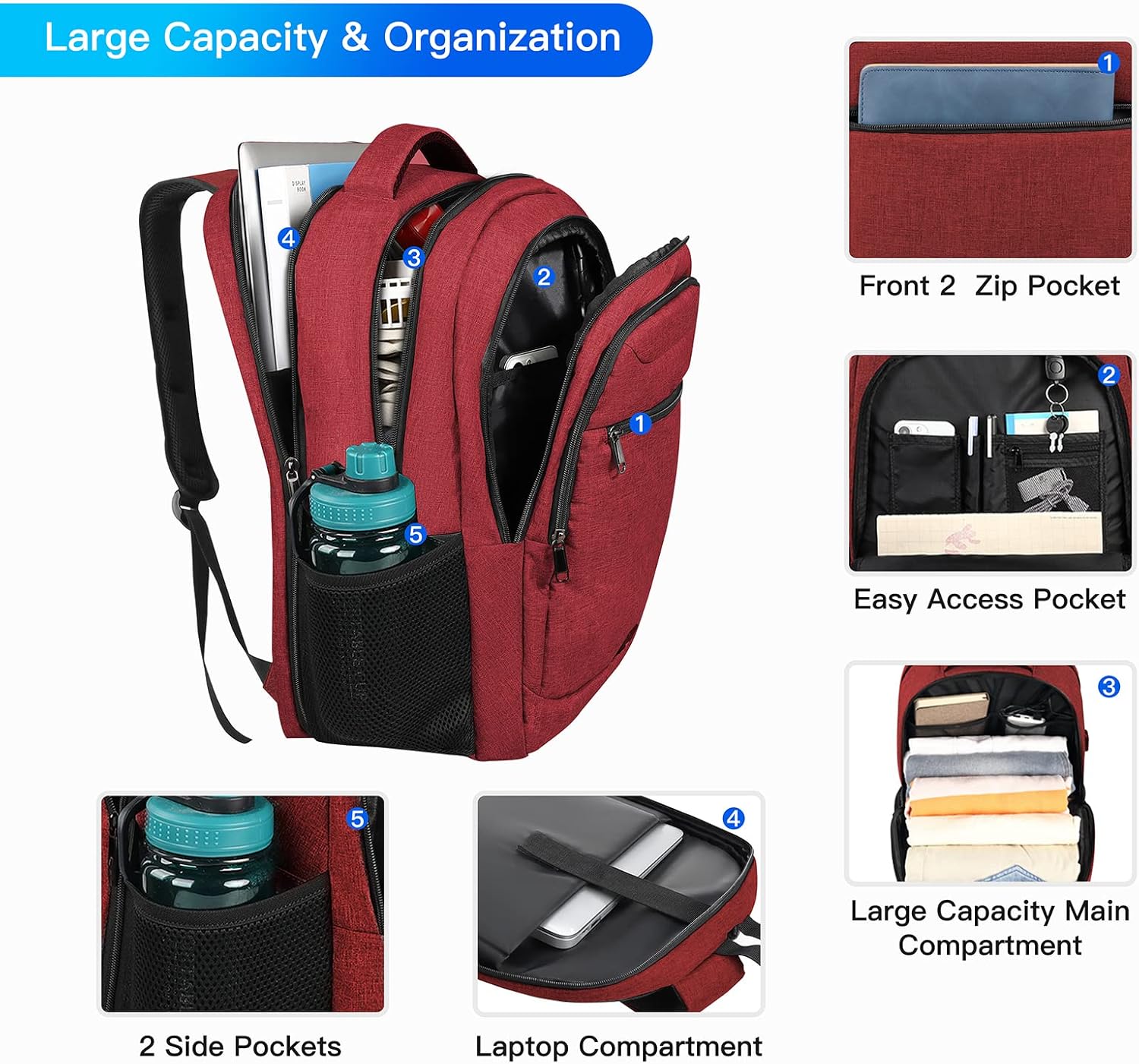 【A number of Pockets & Organized】: Dimensions: 19.6” x 13.7” x 9.45”, matches as much as 17.3″ laptops. This laptop computer backpack 17 inch owns 16+ impartial pockets. 4 spacious important compartments with many hidden pockets to place stuffs like journey equipment, garments, digital gadgets, playing cards, umbrella, water bottle and extra. The laptop computer backpack has one massive separate laptop computer compartment to carry as much as 17.3 inch laptop computer, 1 shockproof laptop computer compartment matches beneath 15.6 inch laptop computer/Macbook.