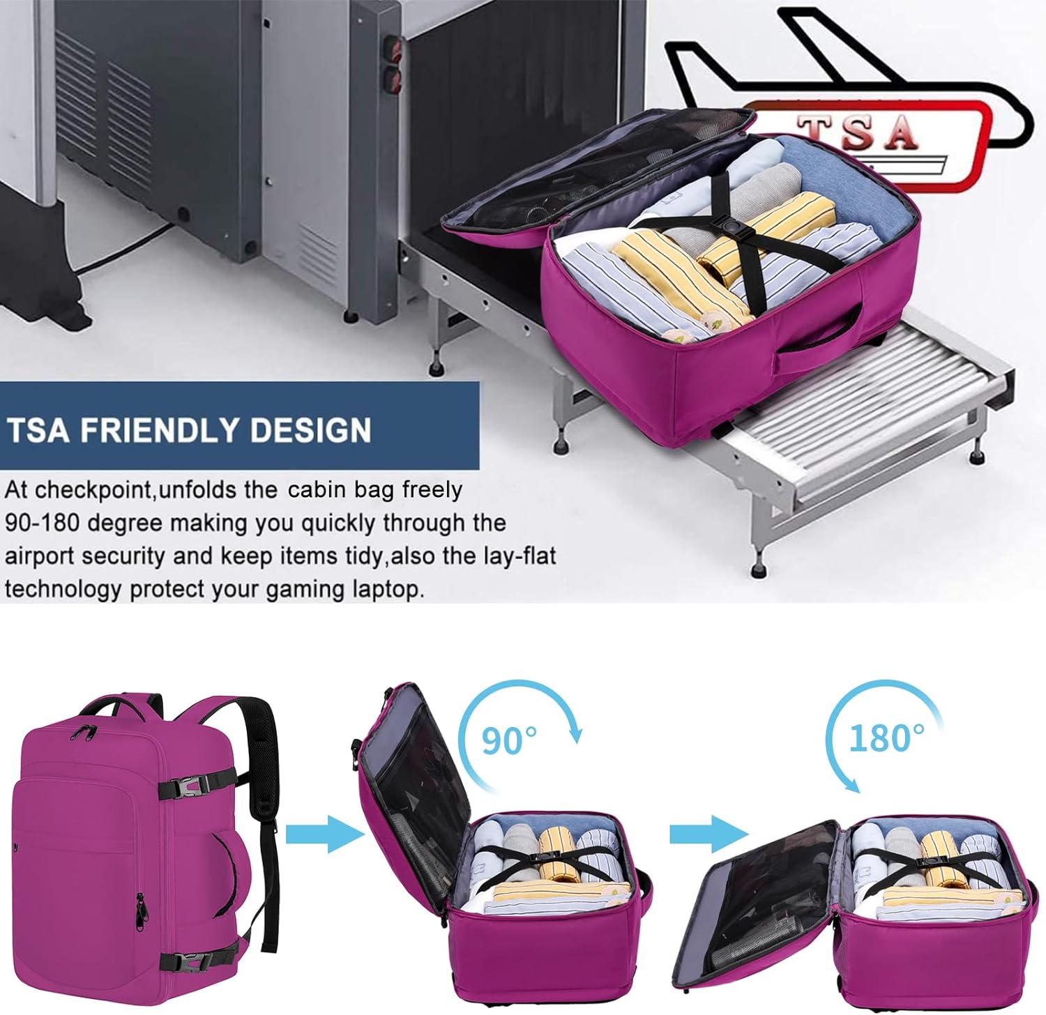 【AMPLE SPACE & PLENTY OF POCKETS】 – This journey backpack has a big zippered heart compartment, it may be opened 180°like a suitcase,making it straightforward to pack your baggage into it, there are baggage belts inside to maintain your garments in place,offers extra safety on your gadgets. A entrance zipped compartment with loads of helpful pockets to retailer totally different small gadgets. The zipper pocket on the again can maintain beneficial gadgets equivalent to telephone, pockets.One mesh pocket on the facet on your watter bottle.