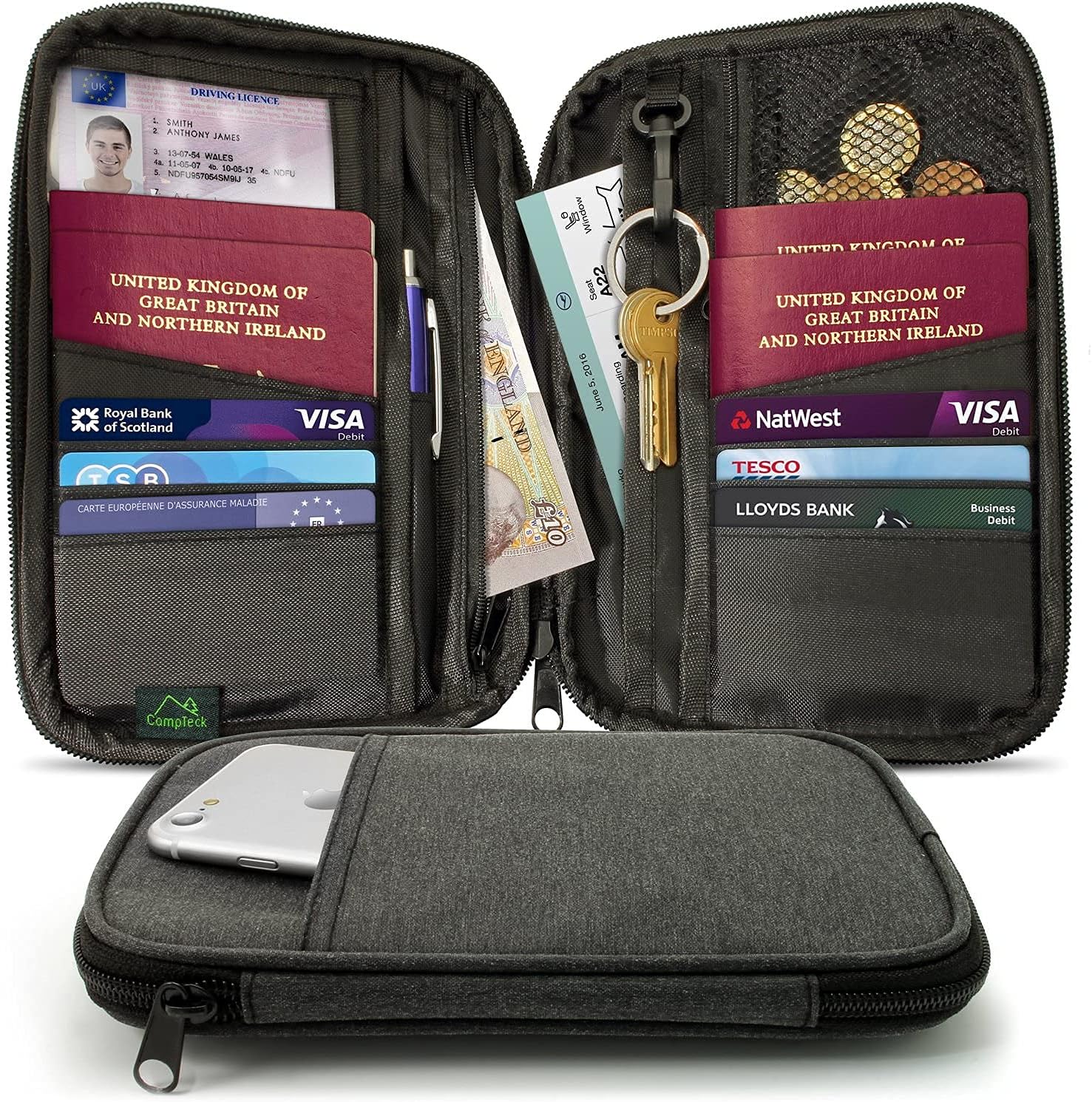 Appropriate for group journey, household journey. Organise your money, ID, playing cards, passport, cash, resort reserving, air flight ticket print out.