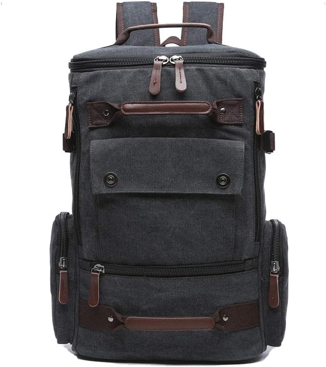 Canvas Backpack, Casual Backpack Unisex Vintage Canvas Rucksack Hiking Backpack Travel Bag Laptop Backpack School Bag Student Bag Satchel Trekking Backpack Camping Bag Black