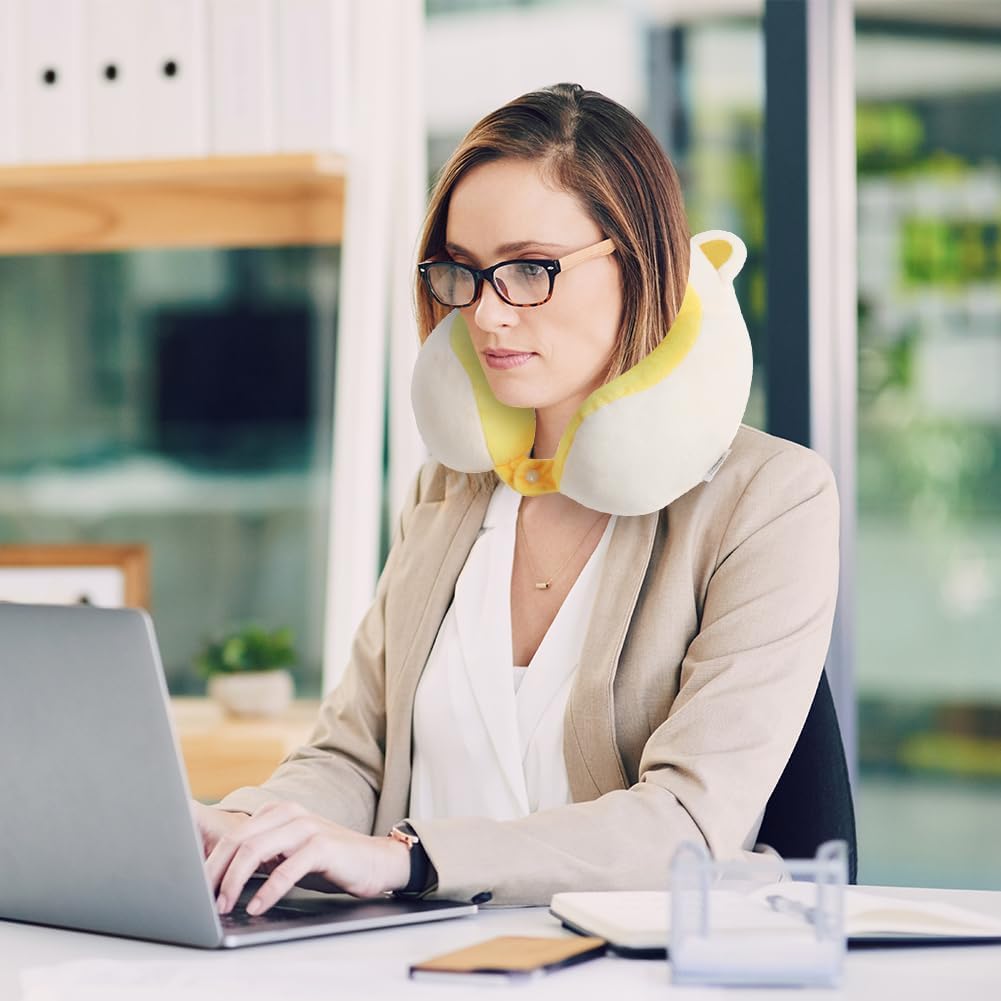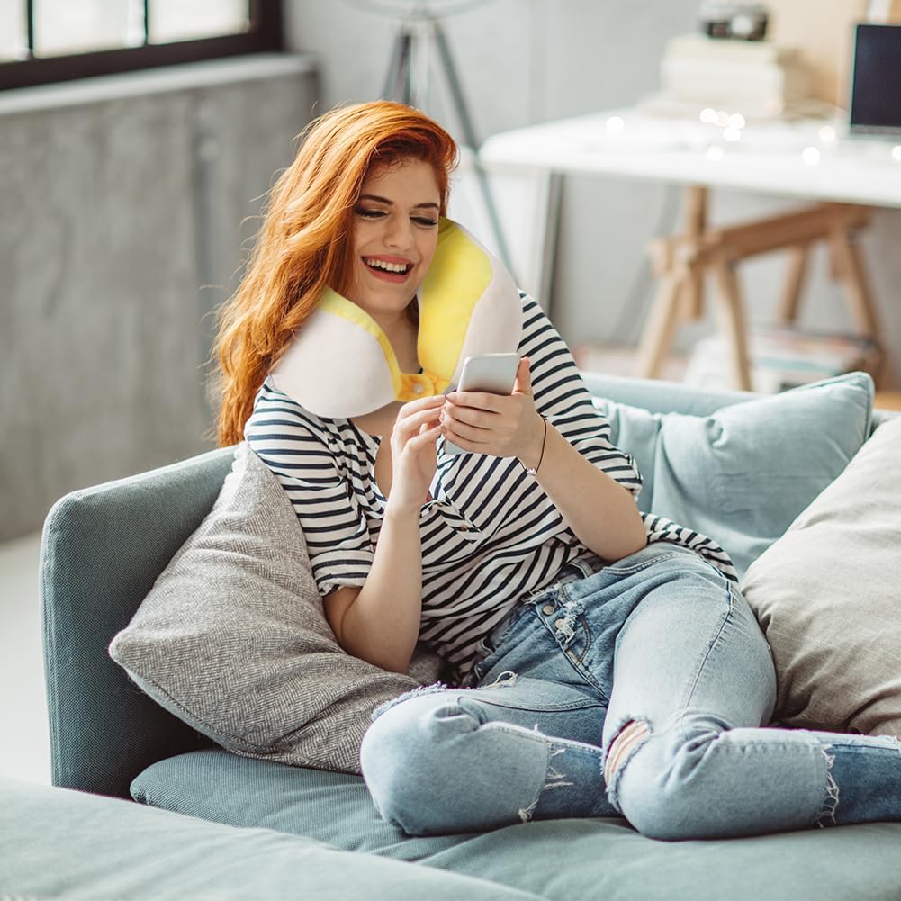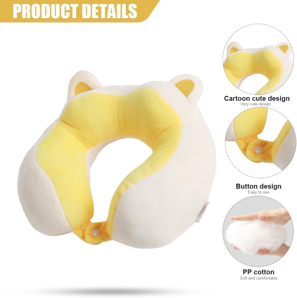 Cartoon U-Shaped Neck Pillow Travel Pillow Neck Pillow Neck Cushion 19 x 17 x 8 cm Memory Foam Neck Pillow Set Flight Plane Pillows Travel Pillow for Travel Airplane Camping Car Train (Yellow)