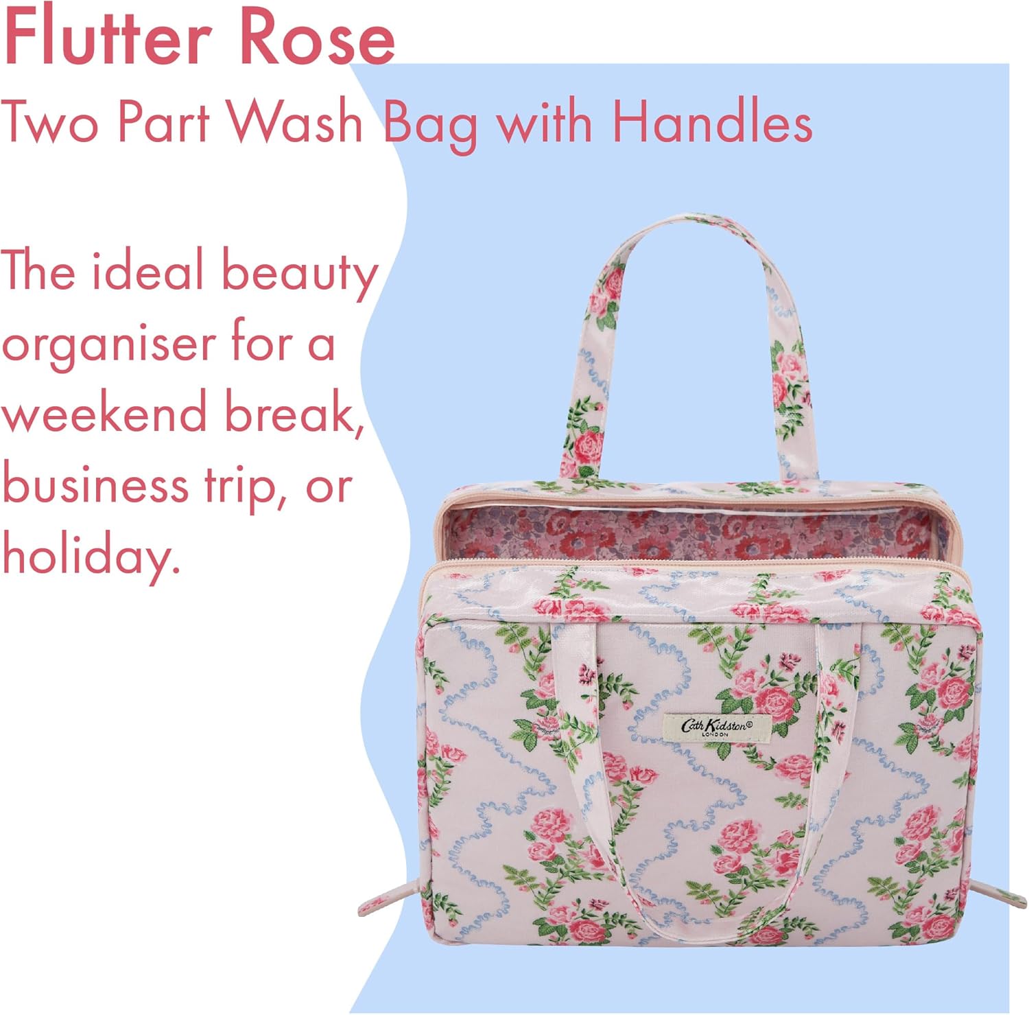 Cath Kidston Wash Bags | Two Part Wash Bag With Handles – Flutter Rose | Travel Size & Vegan Friendly | Toiletry & Cosmetic Bag | Beauty Gift For Her