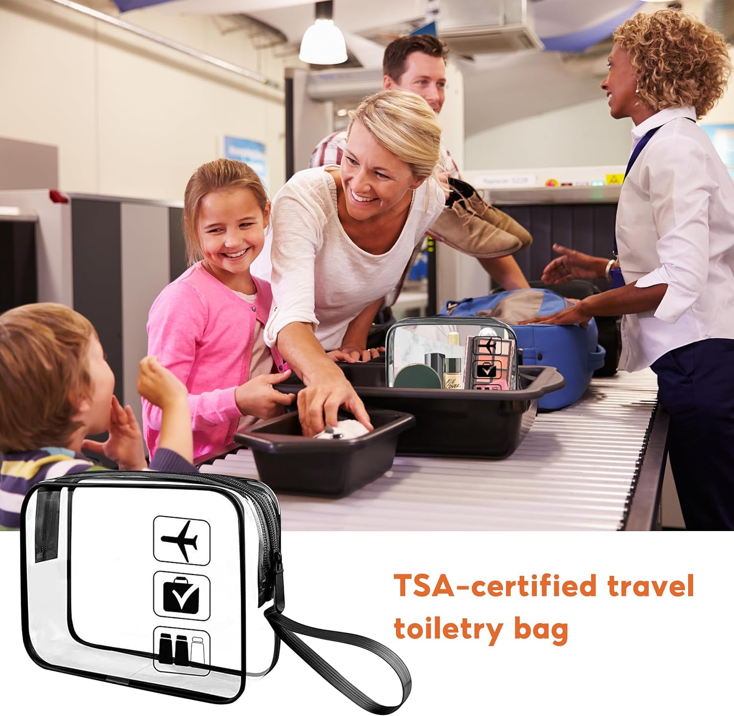 Clear Travel Toiletries Bag, 3 PCS Clear Toiletry Bag with Zipper and Hand Strap, Clear Makeup Bags for Women Men(Black)