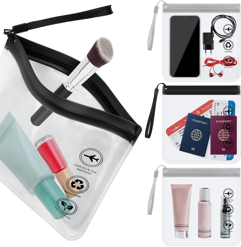 Clear Travel Toiletry Bag,IKR 4PCS Toiletry Bag Airport Security Liquids Bags 20x20cm TSA Approved Waterproof and Leafproof Cosmetic Bags for Travel Holiday Essentials