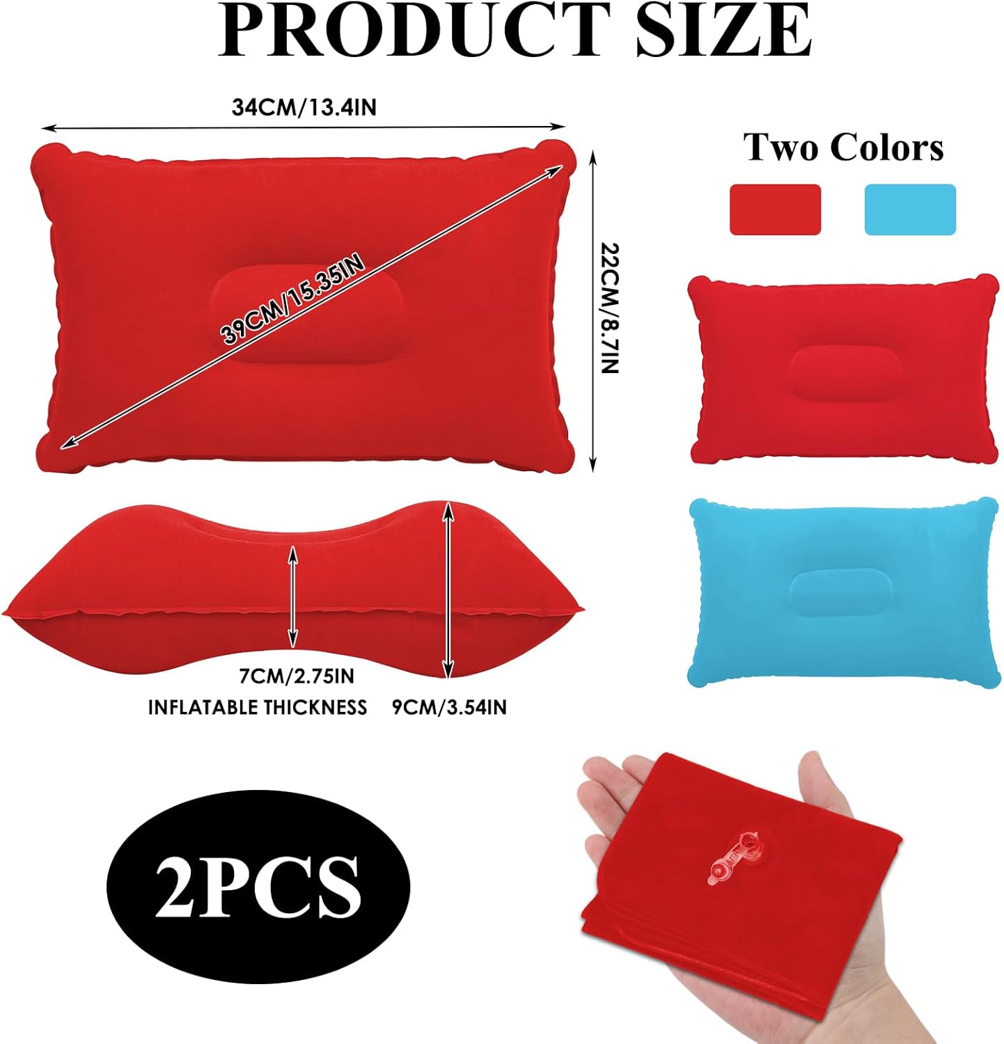 【Appropriate Measurement】Every inflatable pillow measures 34*22 cm, providing comfy help for head or neck.