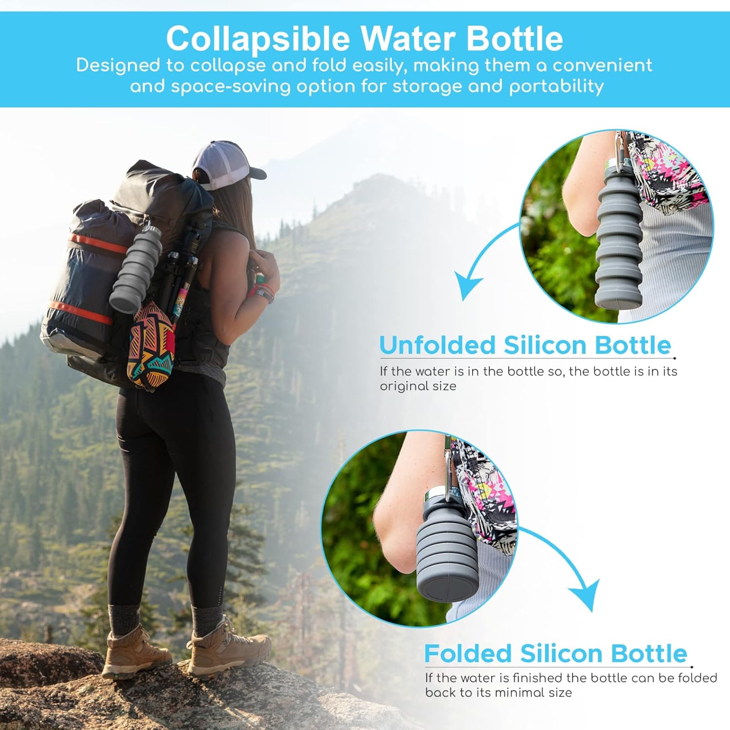 Take Wherever: Collapsible water bottle 500ml, Handy to hold, small and classy, curly storage, will be put in baggage, appropriate for carrying round, as a substitute of disposable cups, one-handed grip, straightforward to take- for operating to the fitness center, sports activities, tenting, out of doors actions, and excellent for airport journey