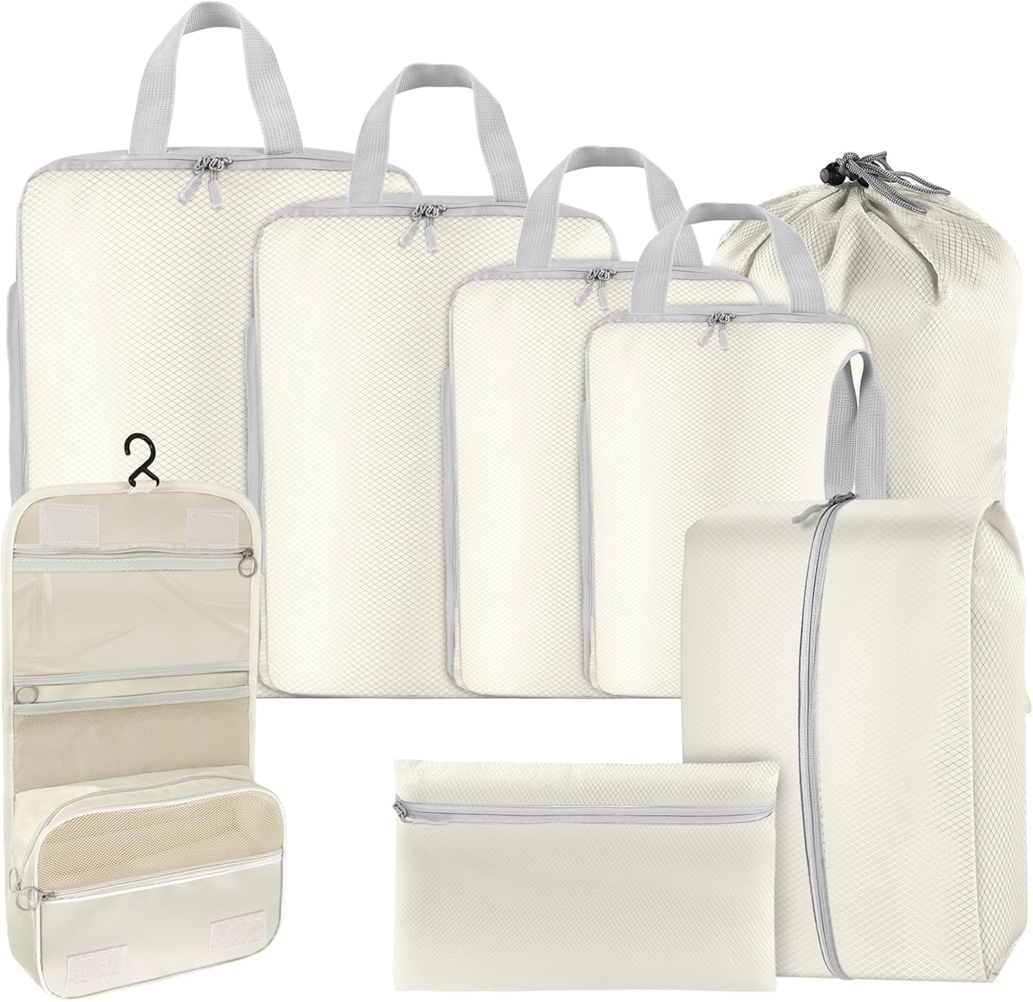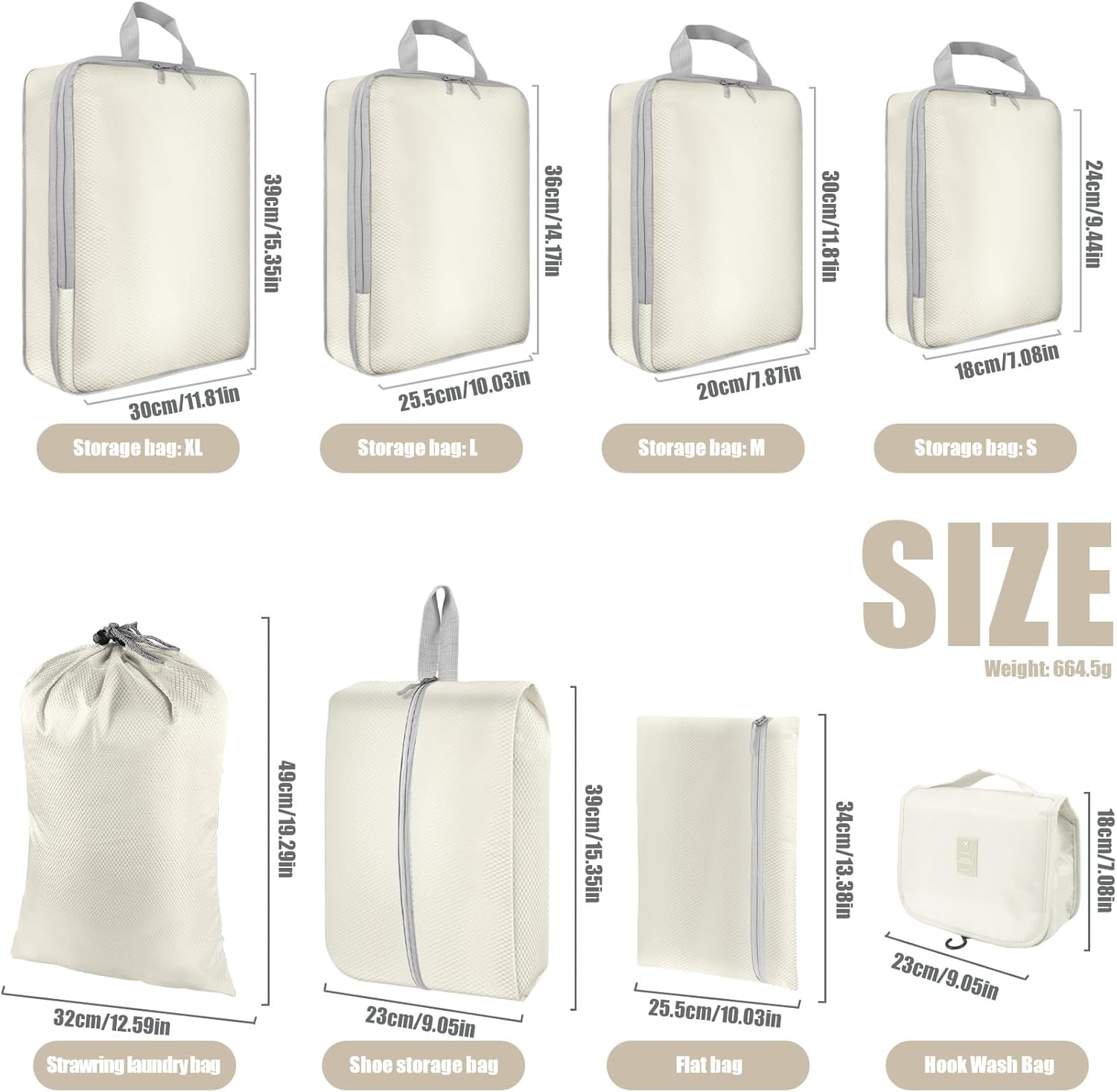 【 Multi-functional Baggage Organiser 】Our packing organisers consists of 4 compression storage baggage, 1 , 1 bundle pocket, 1 flat pocket, and 1 hook beauty bag. The 8 units can meet your various journey storage wants and absolutely retailer journey objects.