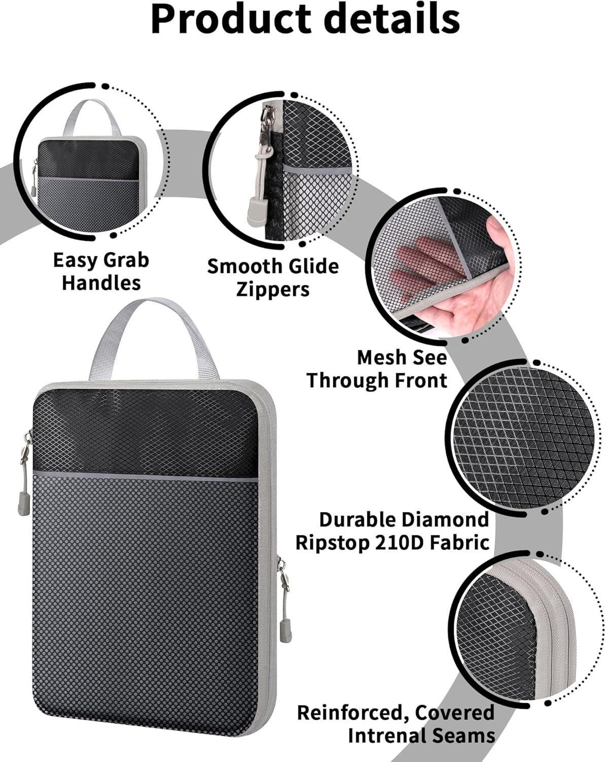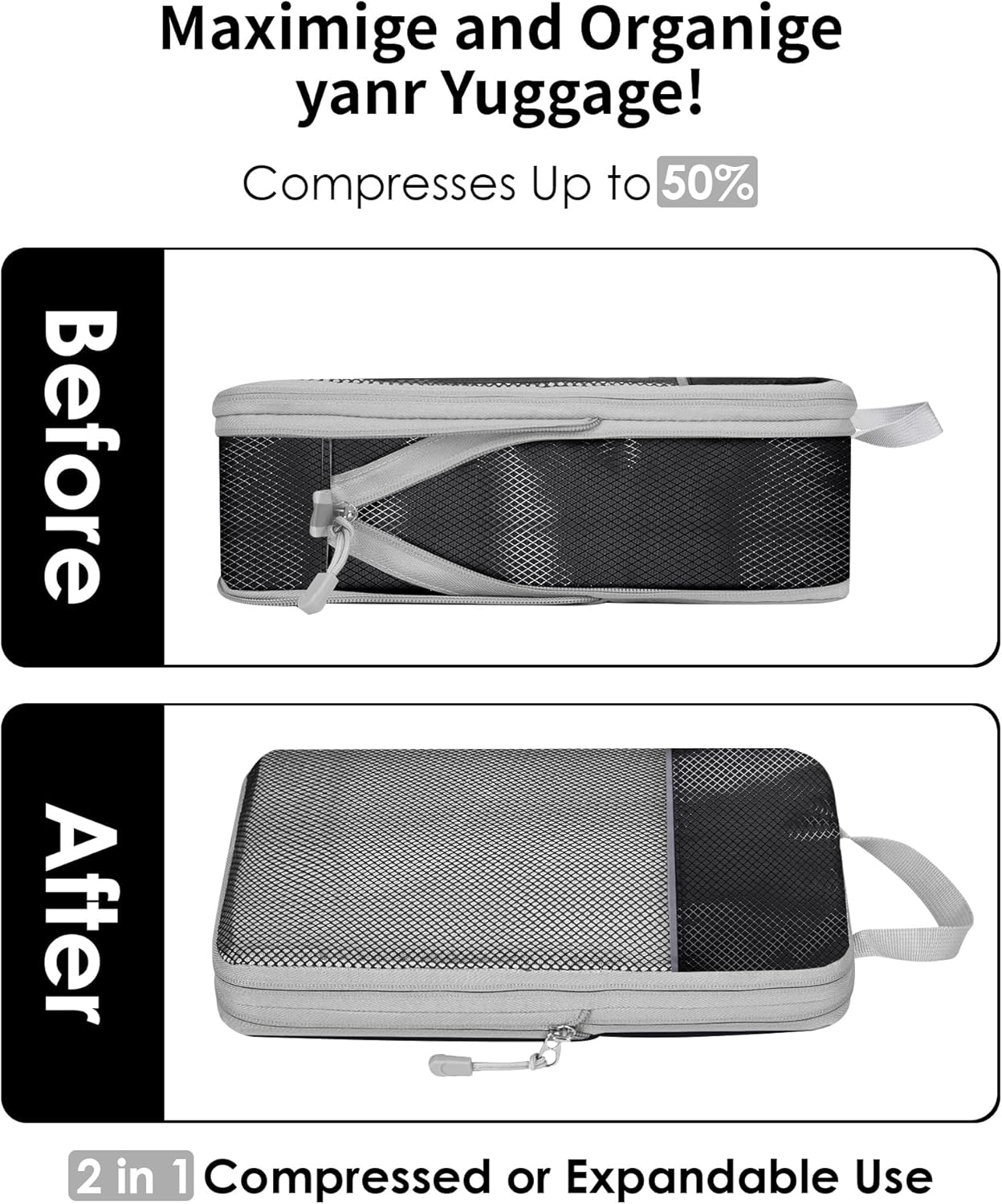 Compression Characteristic:The mesh panels hold your objects contemporary and visual at a look. Rapidly establish and entry your belongings with out opening every dice. Save area in your baggage with the compression perform of the cubes.