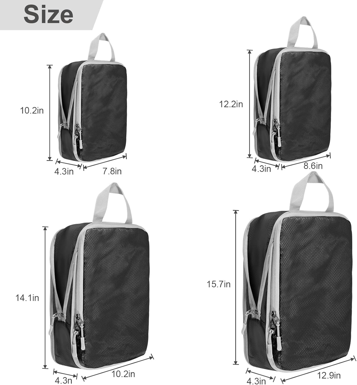 Compression Packing Cubes,4 Set Ultralight Packing Cubes for Carry on Suitcase, Travel Packing Essentials for Suitcase Organizer Bags Set, Durable Travel cubes for Luggage (Set of 4, Black)