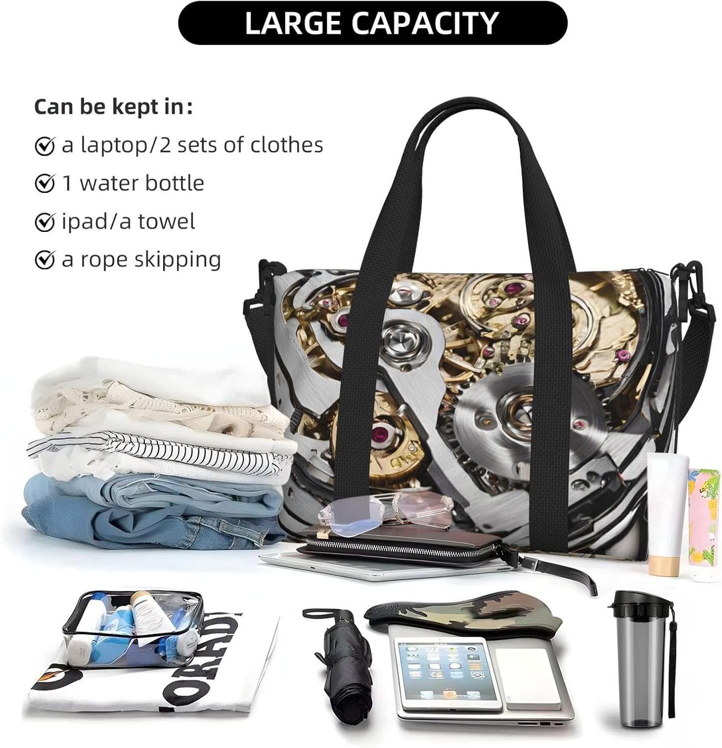 (Cool Steampunk Gears) Waterproof Lightweight Hand Travel Bag – Large Carry-On for 3-5 Day Trips | Air Travel, Sports, Weekend Use | Men & Women (1-Pack)