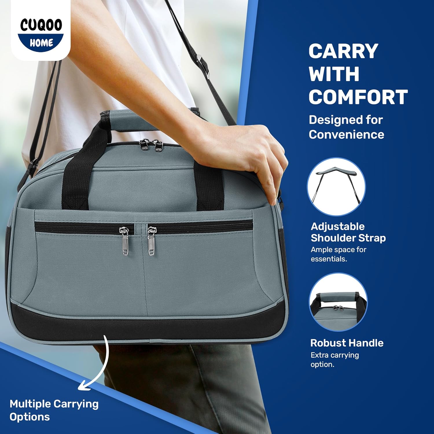 CUQOO 40x20x25 Grey Underseat Cabin Bag for Ryanair Airlines – Water-Resistant Holdall with Multi-Compartments, Premium Zipper & Adjustable Strap – Fits Underseat as Carry-On Bag for Planes