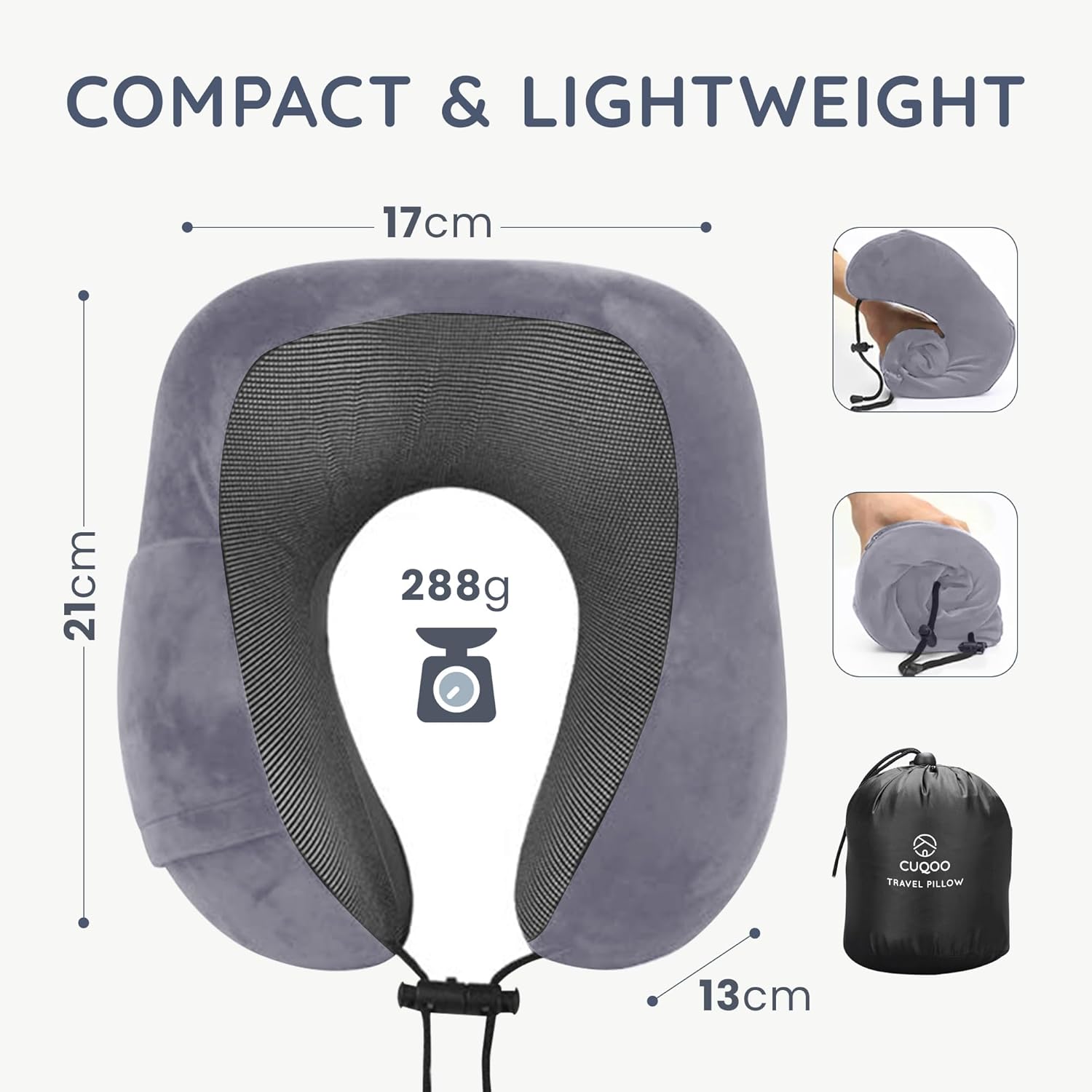 𝐋𝐈𝐆𝐇𝐓𝐖𝐄𝐈𝐆𝐇𝐓 & 𝐄𝐀𝐒𝐘 𝐓𝐎 𝐂𝐀𝐑𝐑𝐘 – Weighing simply 350g, this neck pillow is extremely light-weight and transportable. It folds neatly right into a small pocket behind the pillow, making it straightforward to pack in your backpack or suitcase with out taking on a lot house.