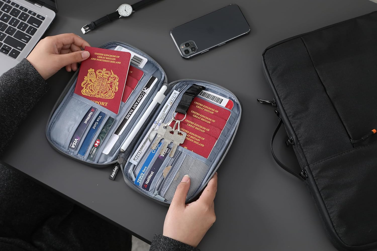 𝐊𝐞𝐞𝐩 𝐘𝐨𝐮𝐫 𝐏𝐚𝐬𝐬𝐩𝐨𝐫𝐭 & 𝐂𝐚𝐫𝐝𝐬 𝐒𝐚𝐟𝐞 𝐰𝐢𝐭𝐡 𝐔𝐥𝐭𝐢𝐦𝐚𝐭𝐞 𝐖𝐞𝐚𝐭𝐡𝐞𝐫 𝐏𝐫𝐨𝐭𝐞𝐜𝐭𝐢𝐨𝐧: Offers dependable safety to maintain your necessities secure and dry in various climate circumstances with our household passport holder. Best for journey, dwelling, tenting, or enterprise journeys, it provides a contact of magnificence to your type. Excellent for each women and men.
