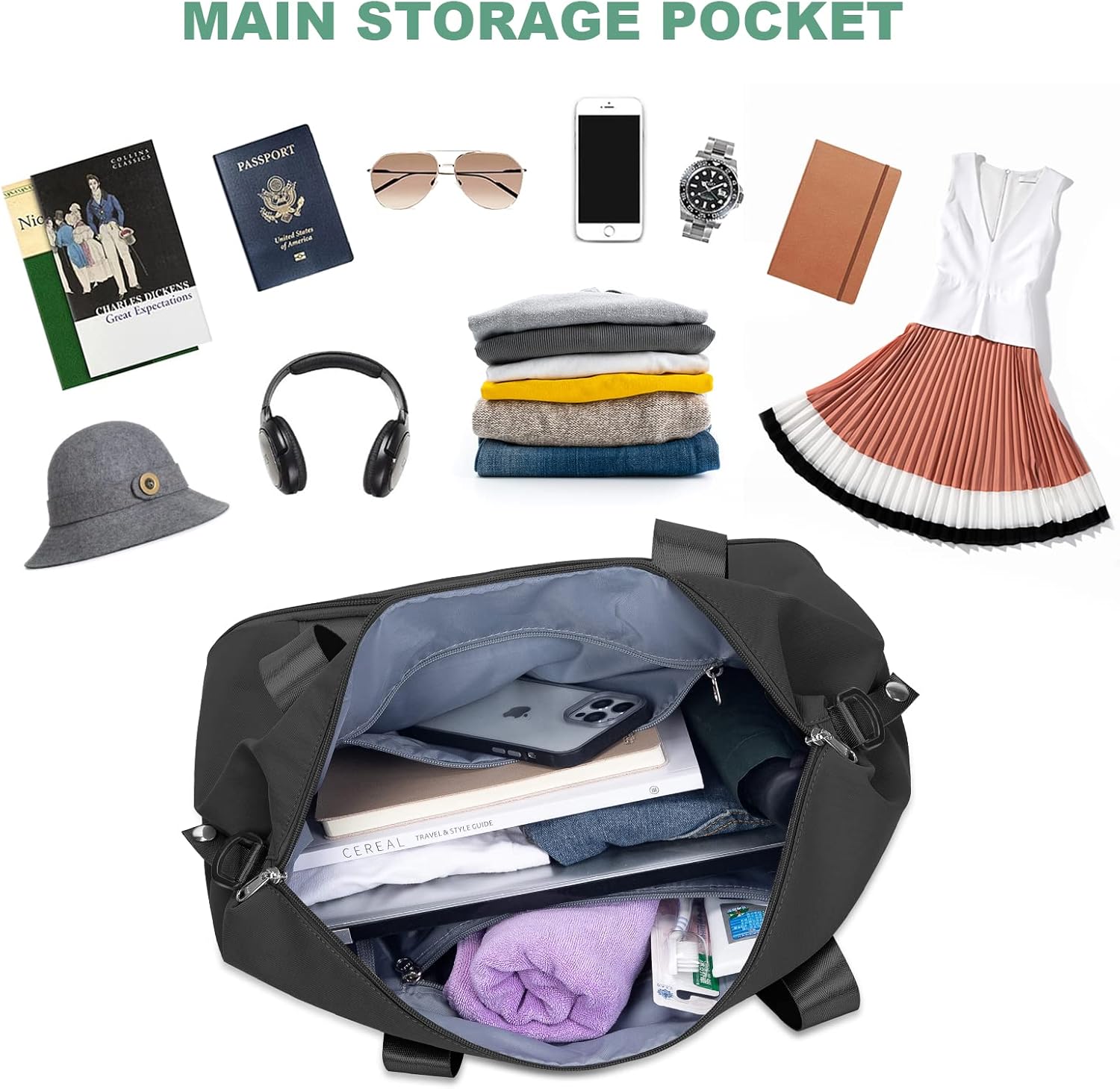 【DRY AND WET SEPARATION WEEKEND BAG】The principle compartment of the hand baggage bag may be very spacious, there’s a high-density waterproof moist pocket inside the primary compartment, you’ll be able to put a moist towel or toiletries.