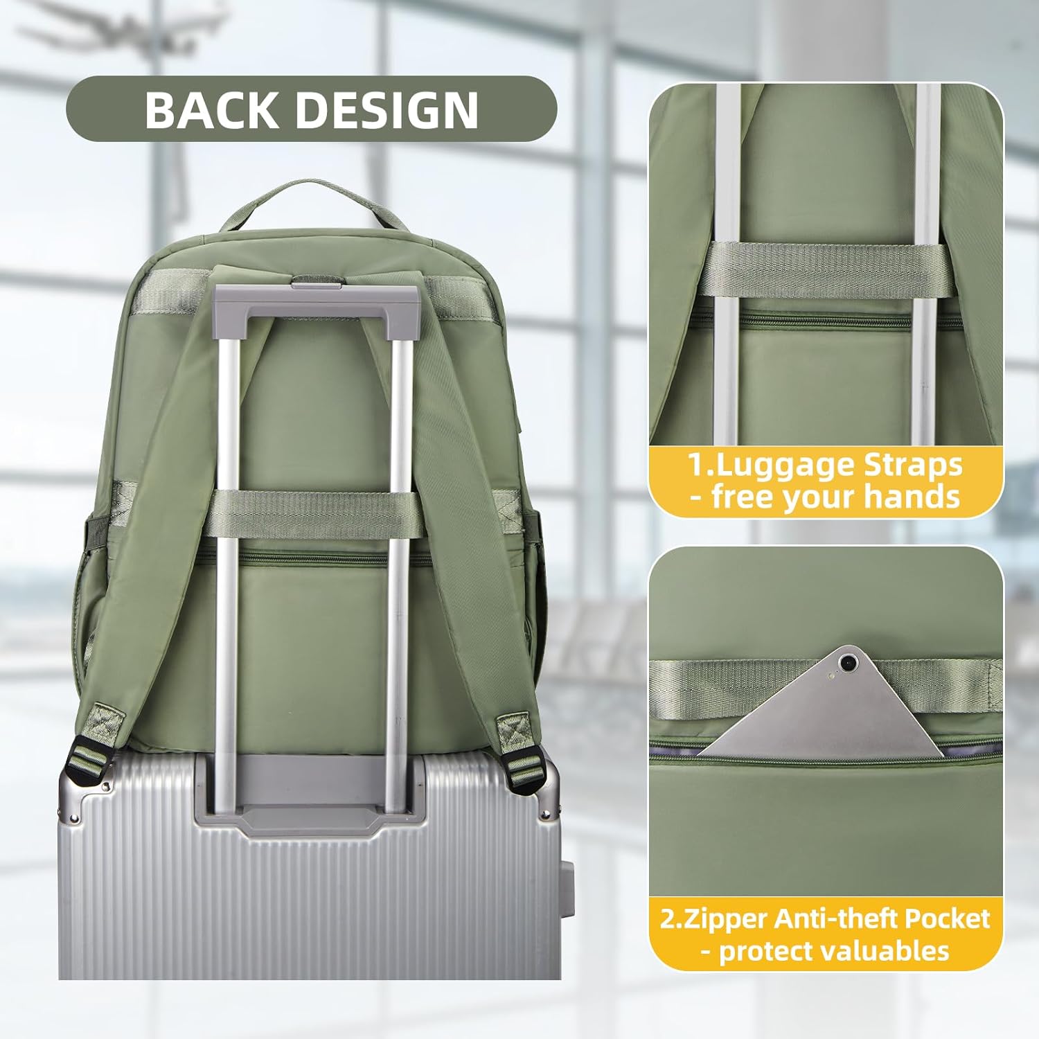 【Sensible Design】①There is an anti-theft zipper pocket designed on the again of the backpack to retailer valuables and defend your property security. ②There can be a suitcase fixing strap on the again of the backpack, we will repair the backpack on the suitcase and free our fingers.