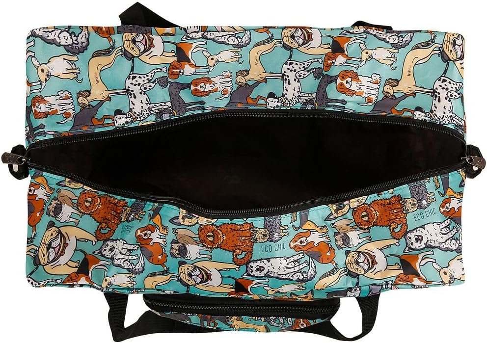 Eco Chic Recycled Cabin Holdall Bag, Lightweight Foldable Carry-On Luggage Water-Resistant Underseat Travel Duffle (Dogs Teal)