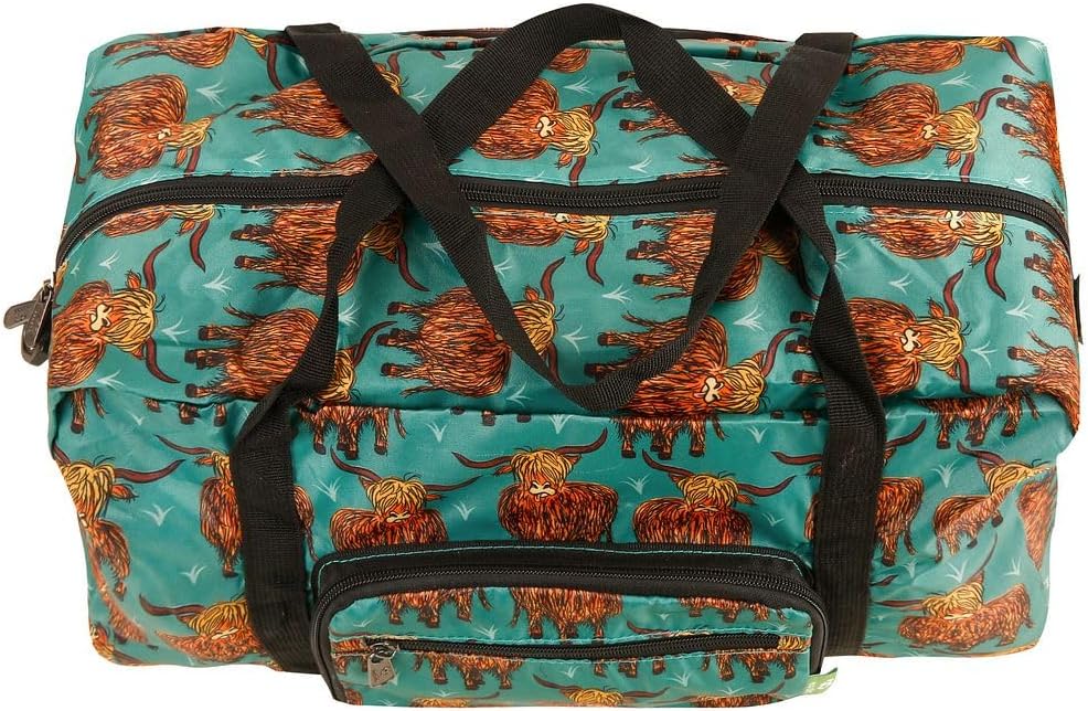 Eco Chic Recycled Cabin Holdall Bag, Lightweight Foldable Carry-On Luggage Water-Resistant Underseat Travel Duffle (Highland Cow Teal)