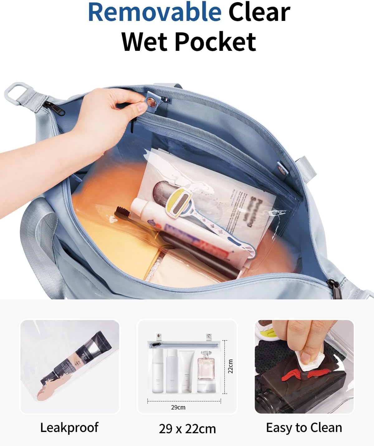 【4 WAYS TO CARRY】: The holdall bag conveniently folds into the moist bag for straightforward storage and carrying. You’ll be able to connect it to your suitcase utilizing the trolley sleeve, releasing up your arms. The longer, thick nylon webbing handles guarantee a snug grip with no pores and skin irritation, whereas the adjustable, padded shoulder straps present most consolation for straightforward carrying.