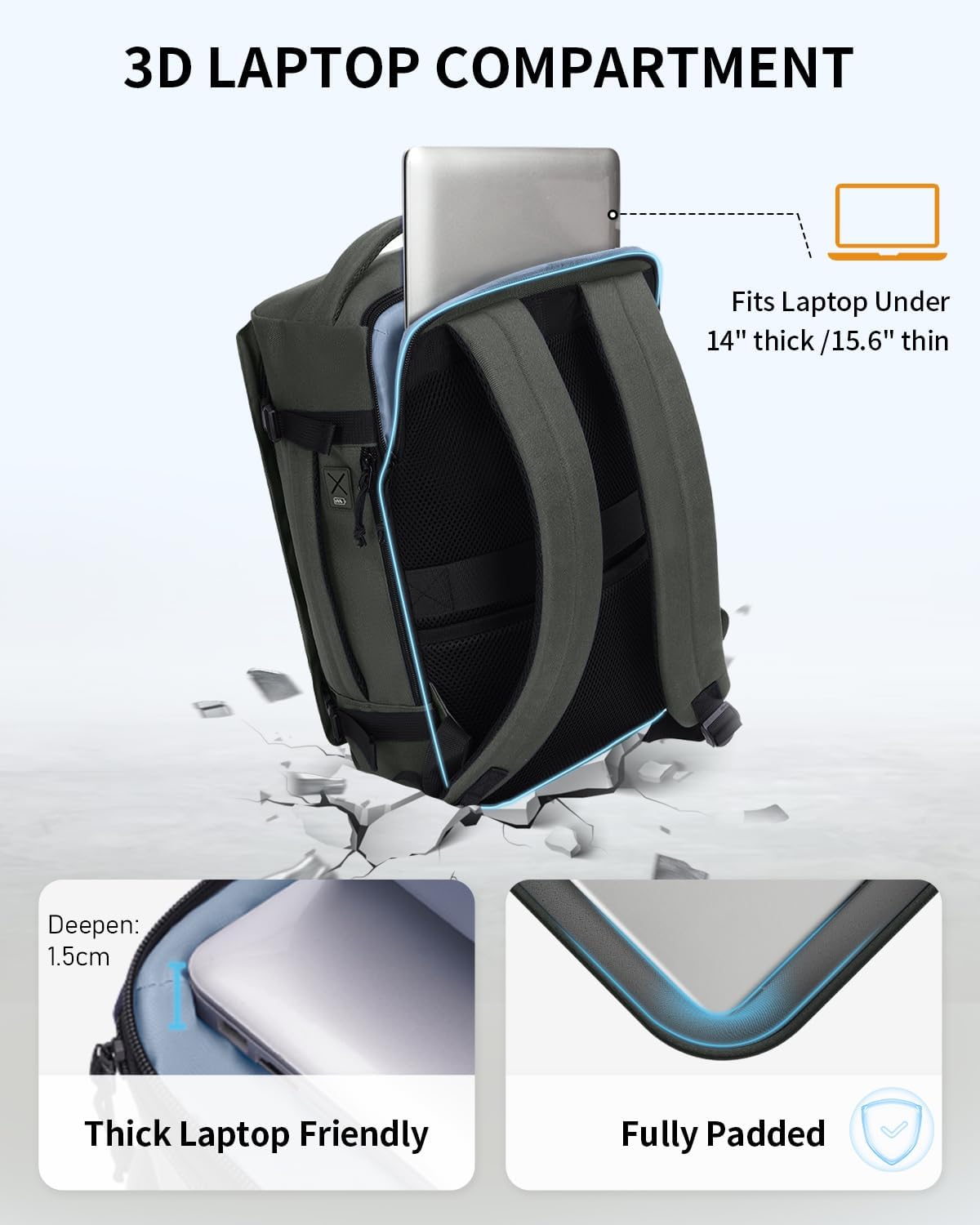 【3D Laptop computer Compartment】: The progressive 3D-designed compartment securely suits laptops as much as 14” (thick) or 15.6” (skinny). It consists of foam padding for superior shock absorption, safeguarding laptops from impacts whereas offering additional consolation in your shoulders and again.