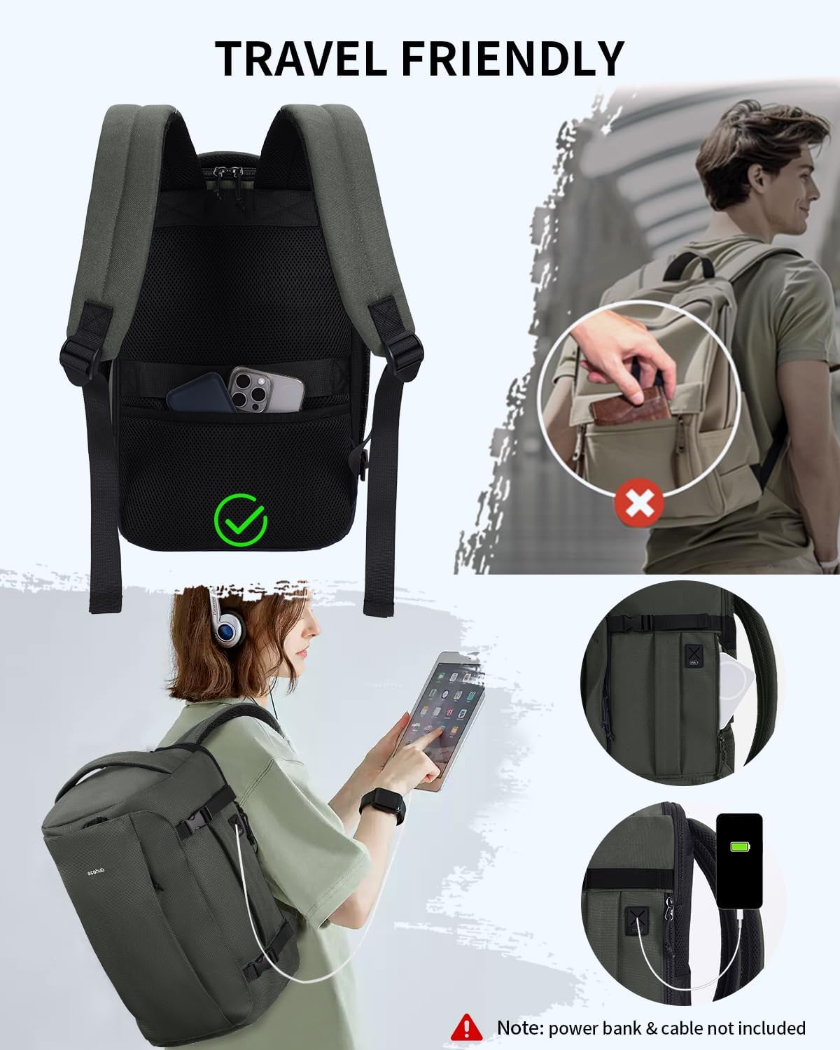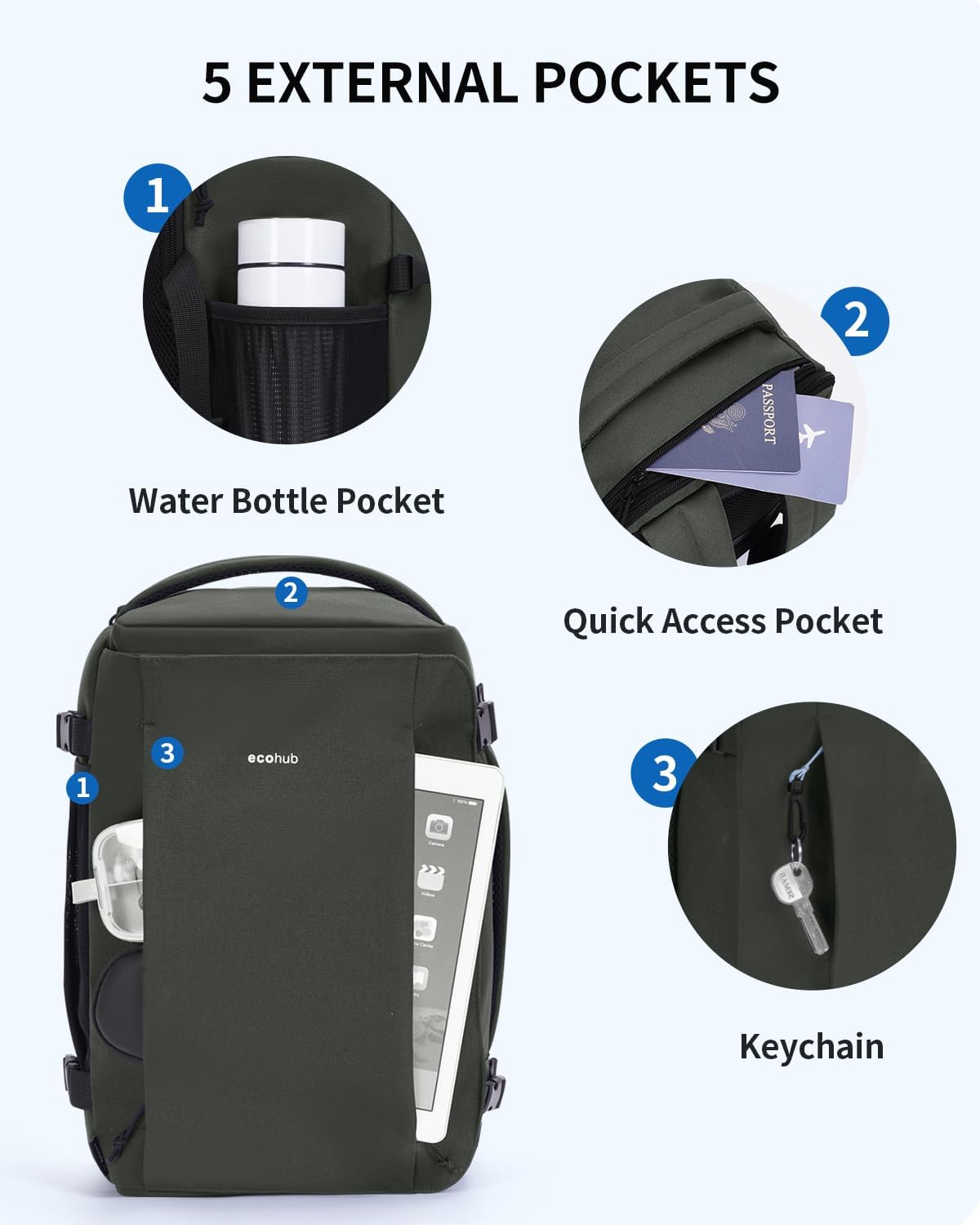 【Easy Packing and Group】:The ECOHUB journey backpack contains a spacious 20L important compartment that opens 180° flat for simple packing and fast entry. With 10 pockets in whole—together with two mesh pockets, an anti-theft pocket, a quick-access prime pocket, and two entrance pockets—every little thing from small gadgets to valuables stays organized and safe. Excellent for every day use, enterprise journeys, or journey adventures.