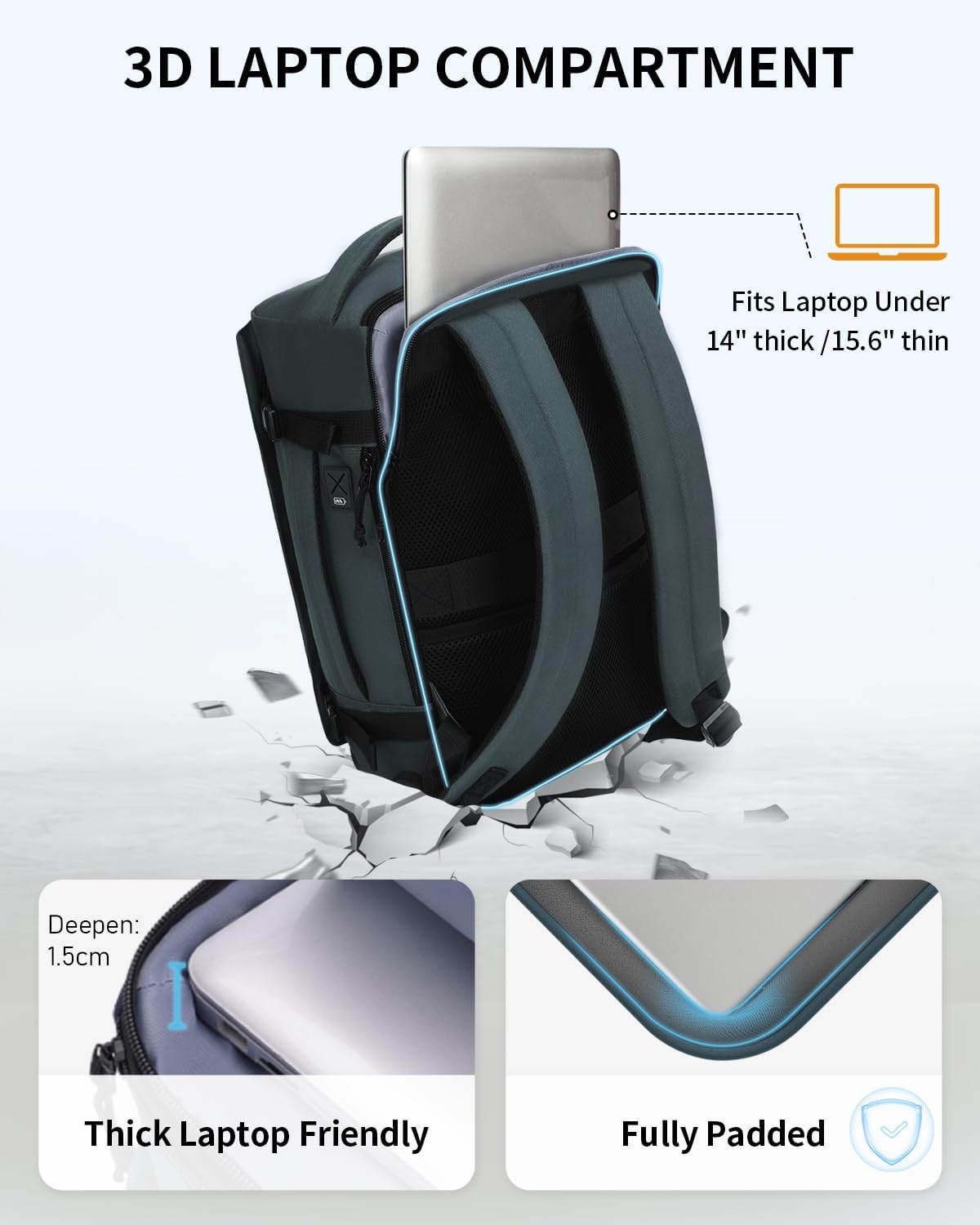 【3D Laptop computer Compartment】: The revolutionary 3D-designed compartment securely matches laptops as much as 14” (thick) or 15.6” (skinny). It contains foam padding for superior shock absorption, safeguarding laptops from impacts whereas offering additional consolation on your shoulders and again.
