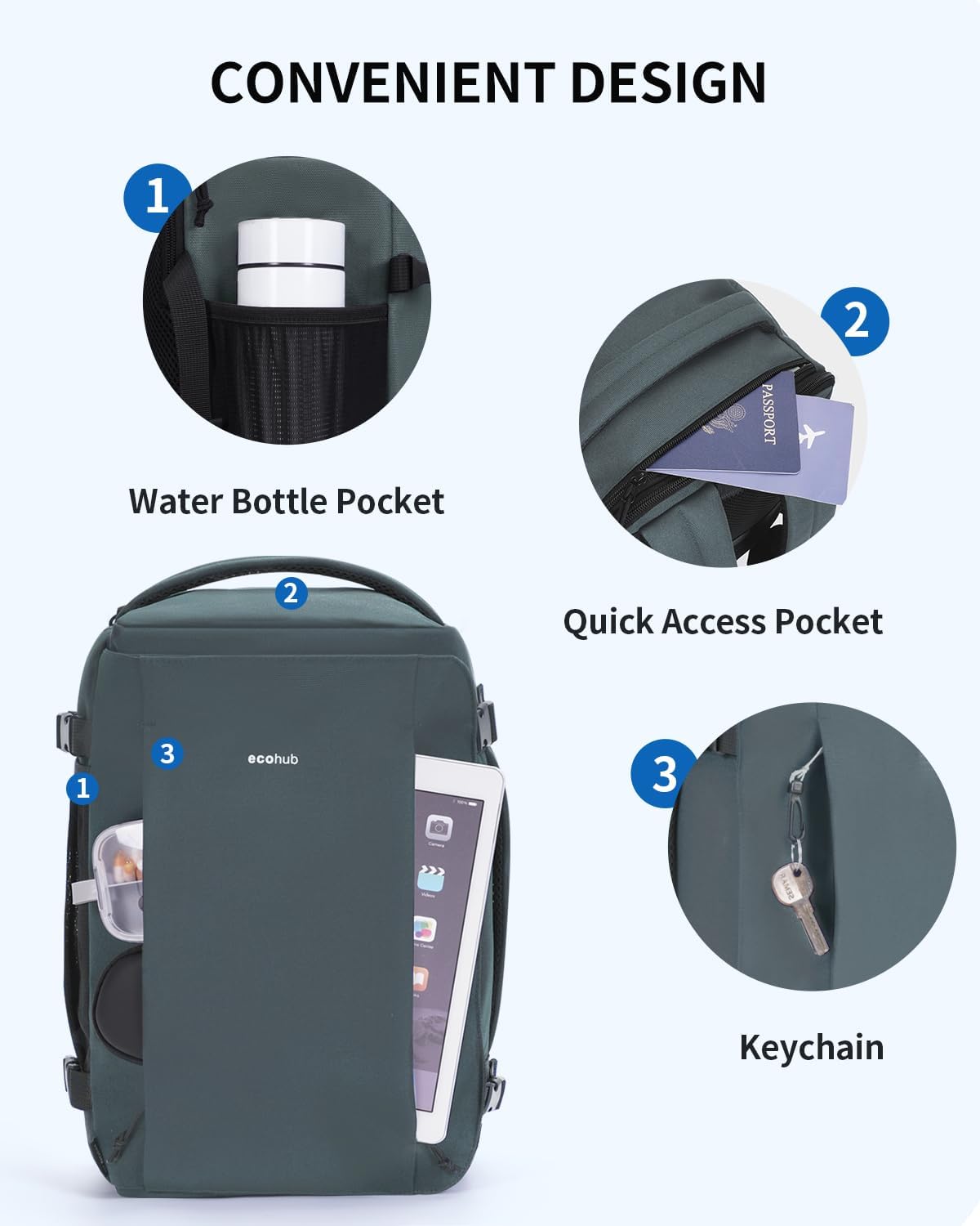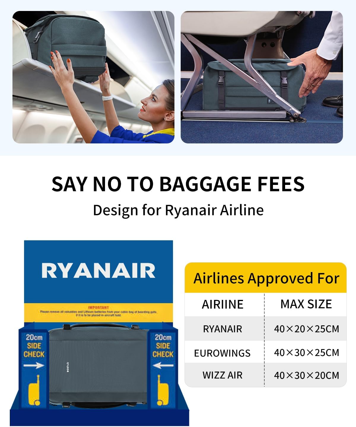 【Born for Ryanair】: The ECOHUB cabin backpack is particularly designed to fulfill Ryanair’s 40x20x25 cm carry-on necessities. Weighing simply 0.79 kg, this backpack effortlessly matches beneath the seat or within the overhead compartment. Along with Ryanair, it is usually appropriate for Eurowings, EasyJet, Wizz Air, TUIfly, British Airways, and different airways. (Patent Pending)